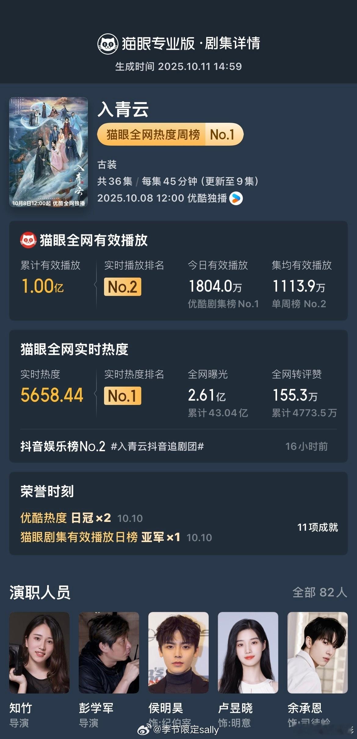 侯明昊、卢昱晓 入青云全网有效播放量破1亿🔥