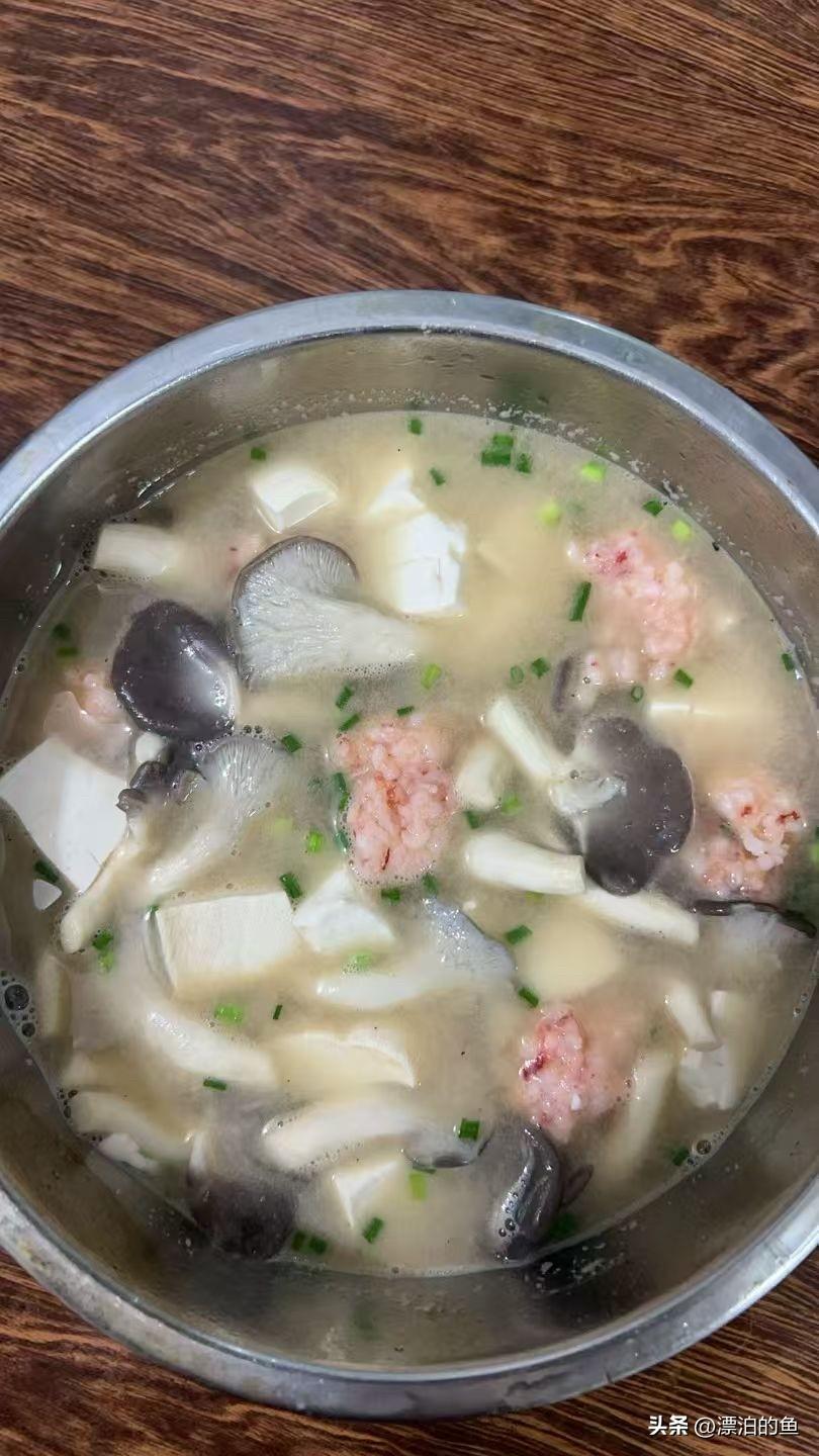 今晚的晚餐整了锅鲜掉眉毛的汤 豆腐嫩乎乎 平菇和白玉菇炖得入味 还有自己手打的虾滑 咬一口Q弹带劲汤头熬得奶白 撒把葱花 闻着就香迷糊了 下班回家炖这么一锅 吃得连汤都快见底了 家常菜的魅力就是这么绝 简单食材一组合 太绝了 你们今晚都吃什么了