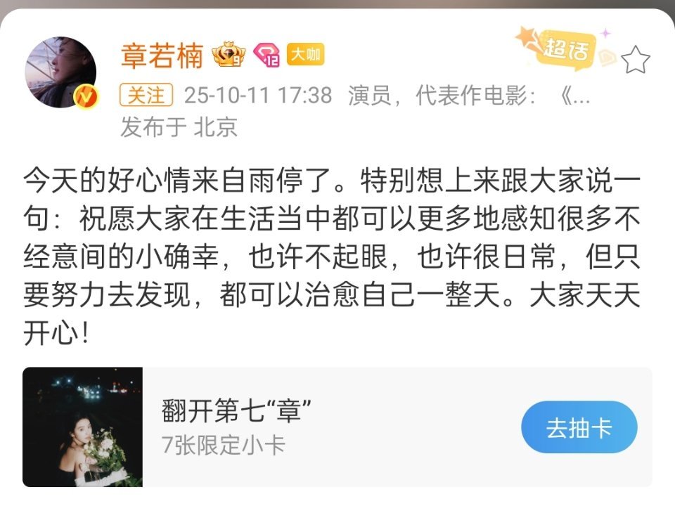 章若楠给粉丝分享日常,感觉把粉丝当朋友一样,这么好的楠楠[憧憬]章若楠今天的好心情来自雨停了