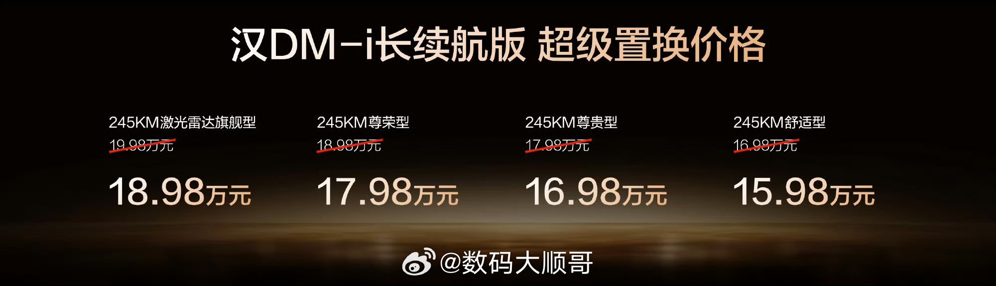 比亚迪汉长续航版15.98万起上市
