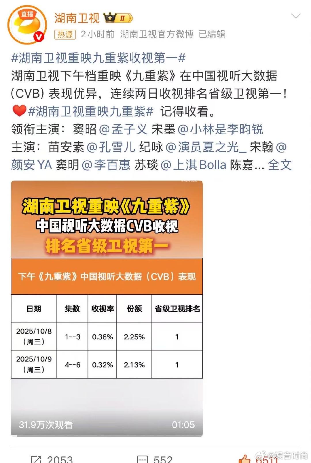 《九重紫》重映收视登顶!那句“士之耽兮,犹可说也”的台词,至今还记得有多惊艳 ? 湖南卫视重映九重紫收视第一 湖南卫视重映九重紫 ​​​
