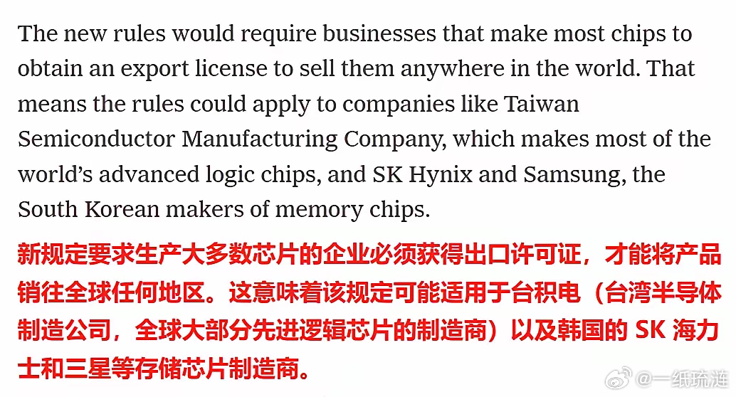 《纽约时报》的意思是:根据中国的新一轮打击措施,总部位于台湾的台积电无法向美国出售任何半导体芯片,因为这些芯片含有……来自中国大陆的稀土矿物。