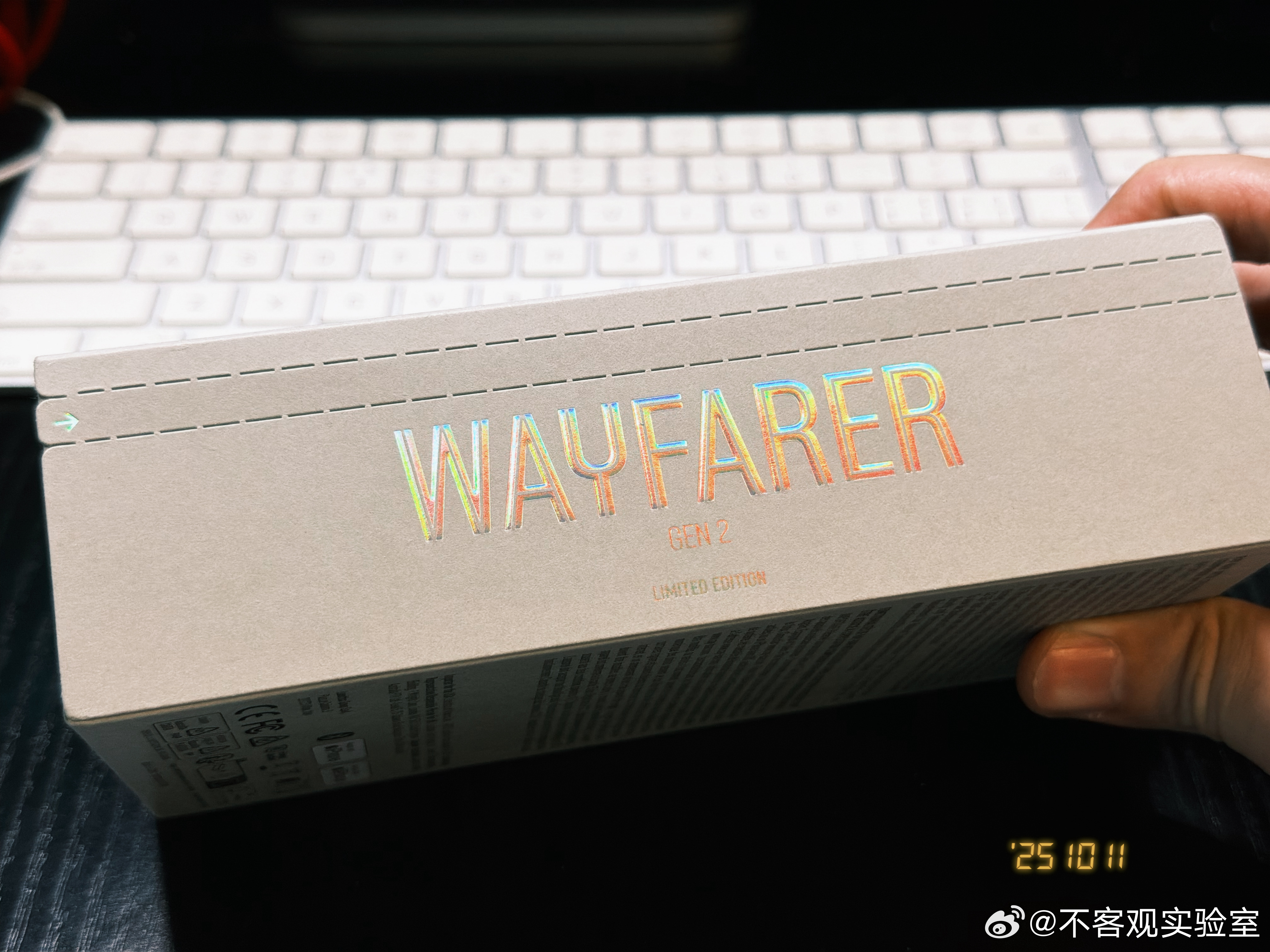 限定版的宽度比默认 WAYFARER 的 L 码窄一些,但戴着还行并不夹头,透明的框架太骚气了,相比之下一代磨砂黑就显得很普通了[允悲][允悲][允悲][允悲]