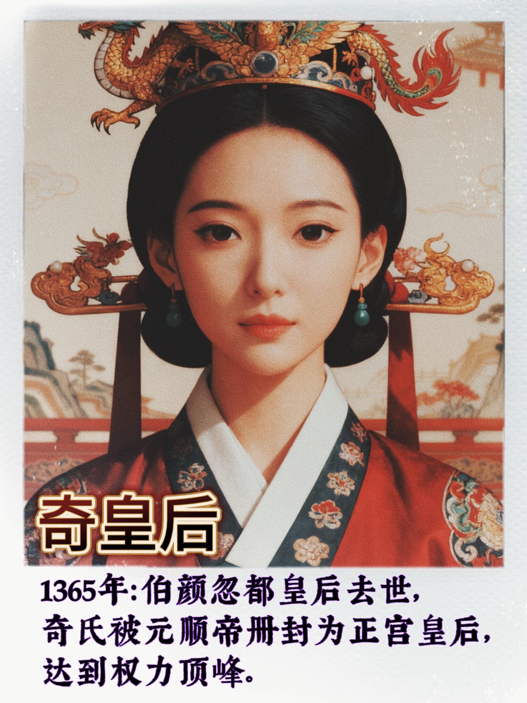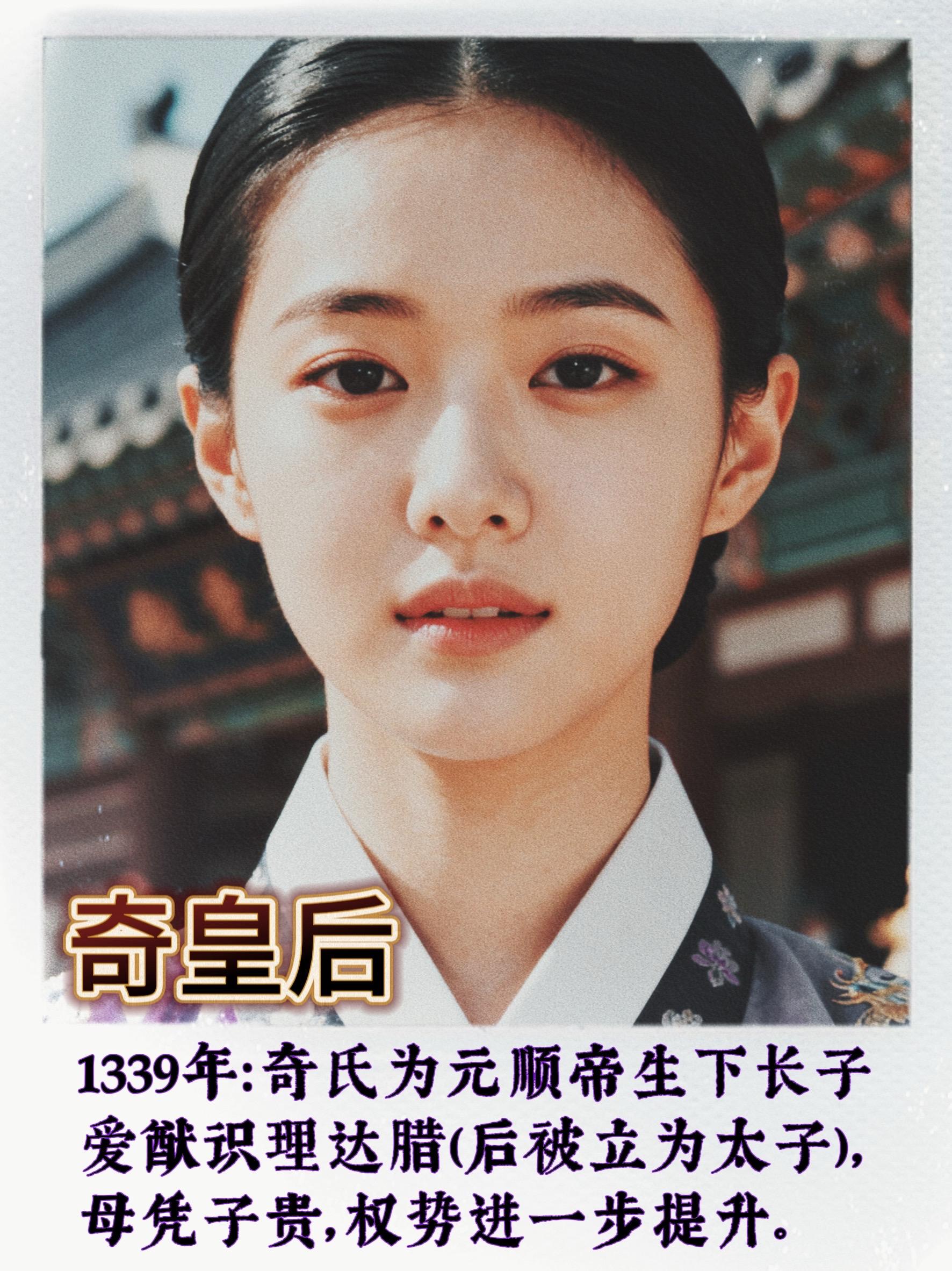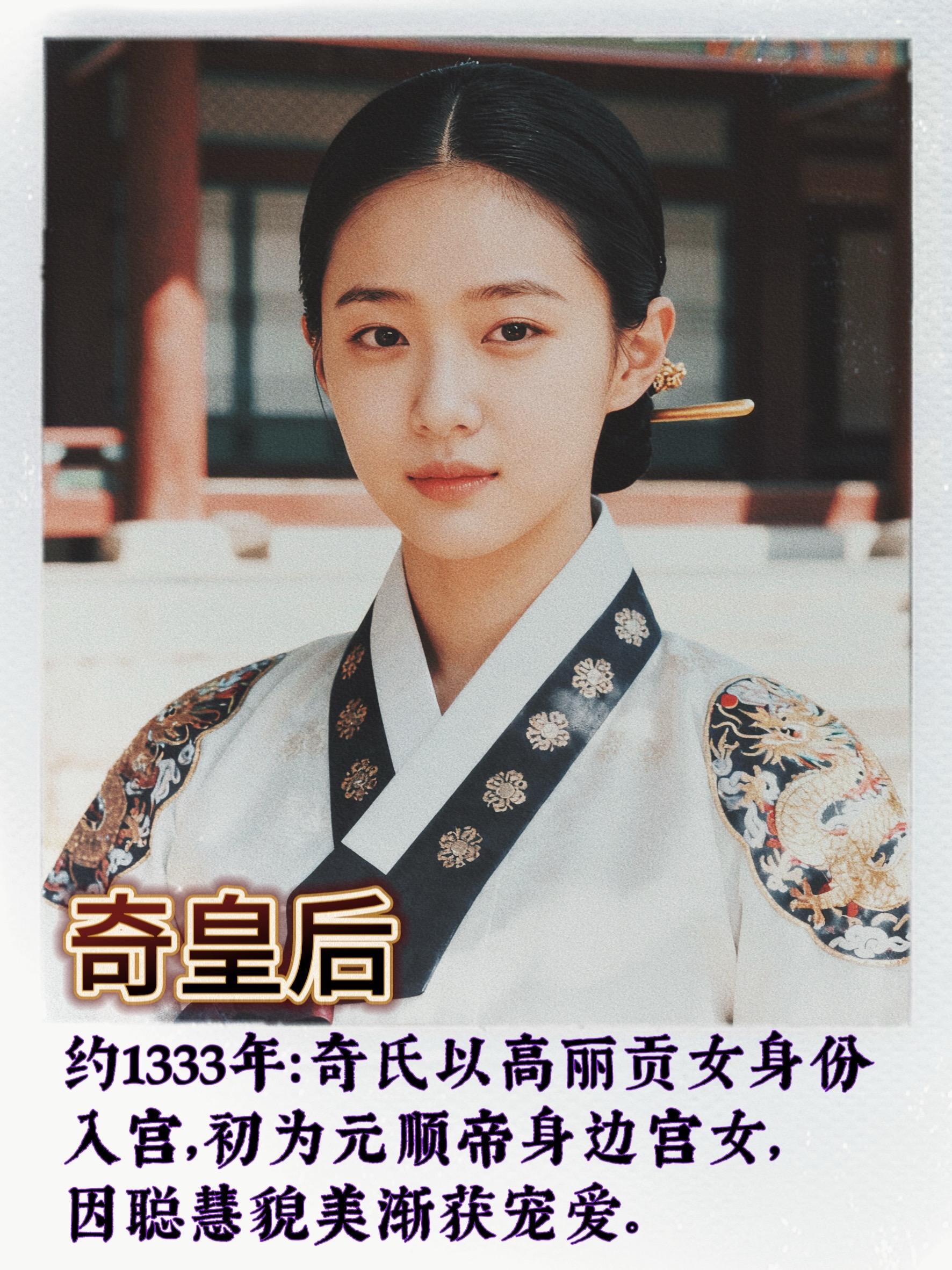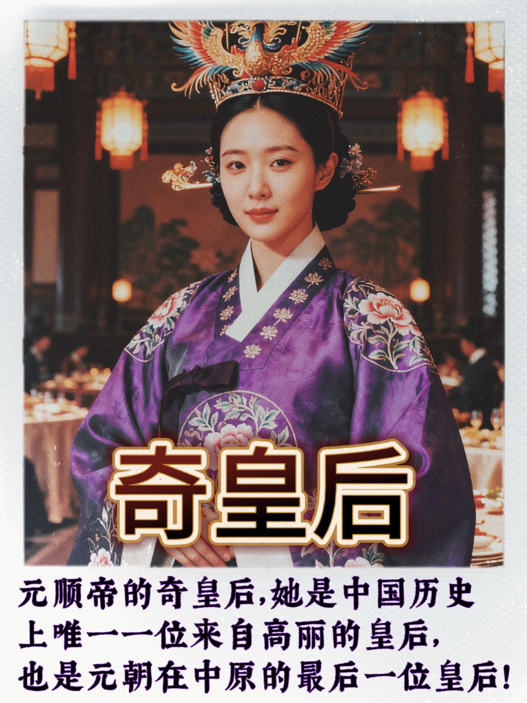 中国唯一一位高丽皇后!奇皇后 奇皇后:从高丽贡女到元宫权后的传奇与悲歌 在元朝末年的风云激荡中,有一位女子以异邦之身,在蒙古帝国的宫廷里书写了一段惊世传奇。她就是奇皇后,中国历史上唯一一位来自高丽的皇后,一位在权力漩涡中绽放又凋零的乱世红颜。 公元1333年,高丽贵族奇氏以贡女之名踏入元大都的深宫。彼时的她,不过是掖庭中一名普通宫女,却凭借着聪慧机敏与倾城容貌,悄然走进了元顺帝的视线。从谨小慎微的侍奉,到渐获独宠的恩荣,她用女性的柔韧,在等级森严的蒙古宫廷中撕开一道缝隙。 1335年,元顺帝原配