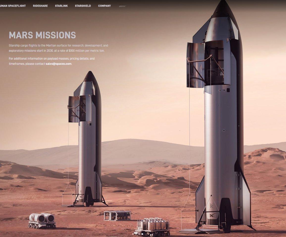 SpaceX计划分别于2028年和2030年使用星舰向月球,火星执行货运任务,货运载荷成本均为每吨1亿美元。
