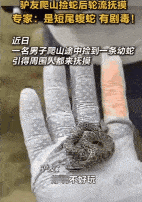 “胆子真大!”男子和朋友爬山,捡到一条小蛇,觉得挺可爱的,几人轮流抚摸,还将这一幕发到网上炫耀,结果却专家一眼识破:这是短尾蝮蛇,有剧毒,严重可致截肢、器官衰竭甚至死亡! 看到视频后,有人立刻指出这条看似“温顺”的小蛇,正是短尾蝮蛇的幼蛇。虽然幼蛇毒性弱于成蛇,但其毒液依然含有以血循毒为主的混合毒素,排毒量相对较大,毒性强。短尾蝮蛇也是我国造成蛇伤数量最多、危害最大的蛇种之一。 这种蛇头部是典型的三角形,瞳孔像猫眼一样是竖条状的。最明显的标记是眼后有一条黑褐色的纵纹,像“黑眉”。它的身体短粗,成年后体长一般在60到80厘米之间,属于小型毒蛇。 短尾蝮蛇分布极广,从北京、河北到江苏、浙江,再到四川、陕西等长江中下游及以北的很多地方都有它的踪迹。它常出现在平原、丘陵、农田甚至村舍附近,它的栖息地与人类活动区域重叠度高,因此人蛇相遇的概率不小。 这种蛇的性格不算特别暴躁,但一旦感到受威胁,会果断攻击。被它咬伤后,伤口会剧烈疼痛、肿胀,可能出现头晕、呕吐、视物模糊等症状,若治疗不及时,后果可能非常严重。 户外活动时,万一遇到蛇,不要好奇靠近,更不要试图捕捉或挑逗,应保持冷静,缓慢后退,绕行。短尾蝮蛇的幼蛇同样具备毒性,不可因体型小或看似安静而放松警惕。 欣赏大自然的同时,我们也需保持一份敬畏之心。远离野生动物,既是保护它们,更是保护我们自己。 各位读者你们怎么看?欢迎在评论区讨论。