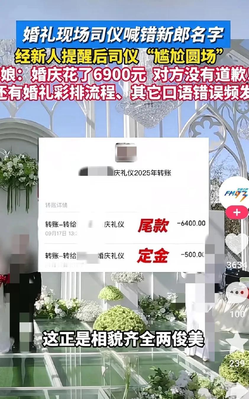 离了大谱!网友这婚礼仪式举行的不是一般闹挺! 6900块钱请个司仪,新郎名字都