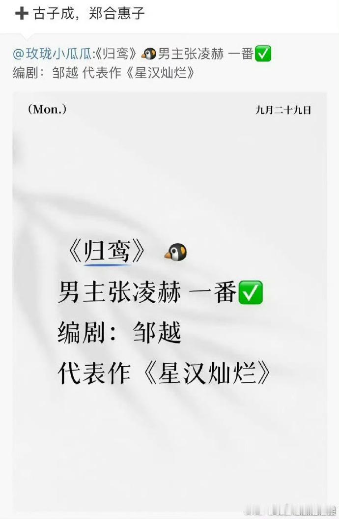 网传张凌赫林允将合作归鸾张凌赫林允将合作归鸾 《归鸾》主演瓜刷屏!网传张凌赫林允主演,有人期待有人唱衰,热度居高不下!