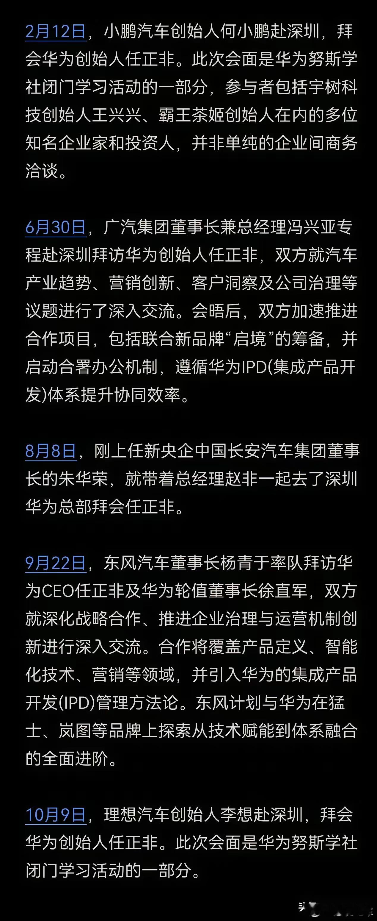 李想去拜访任正非了,这已经是今年第五位造车企业家去拜访任总了,说明什么?