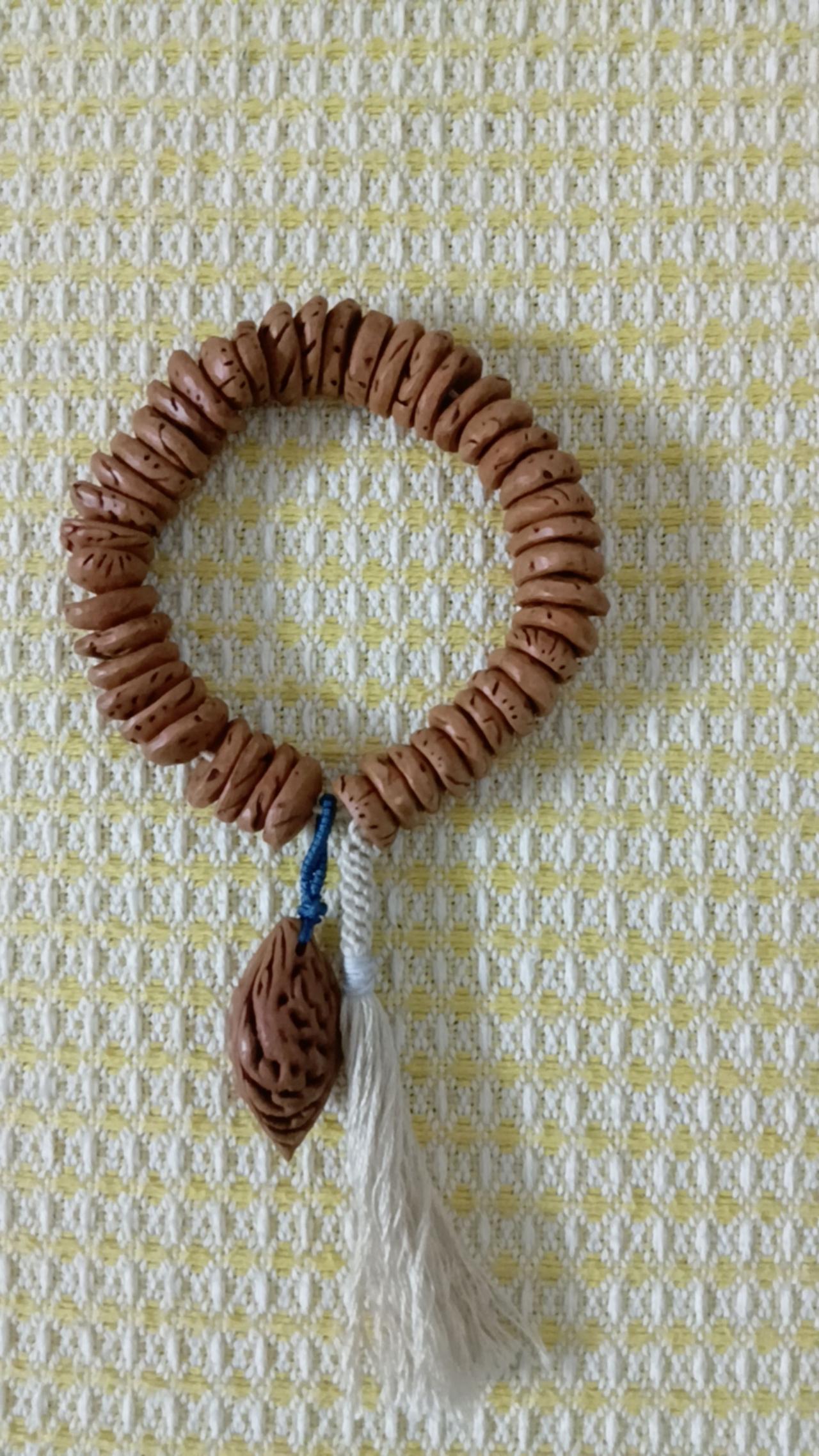 这个也好看,蟠桃核简单串成有两年多,颜色也变深许多。