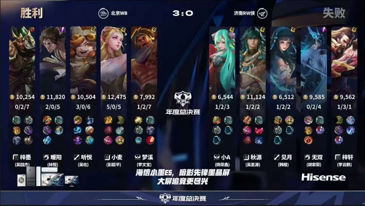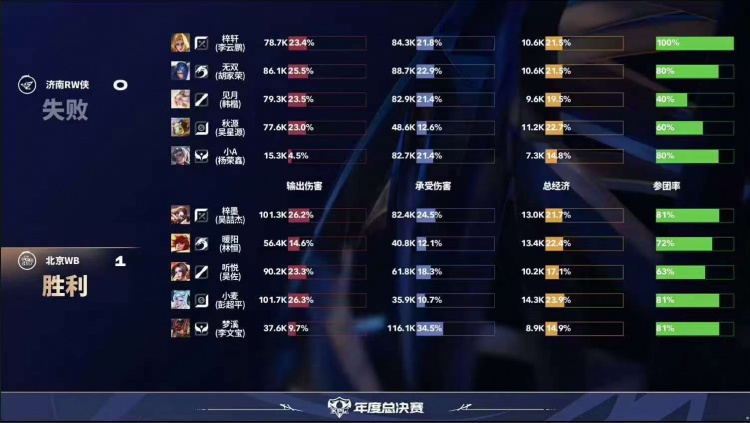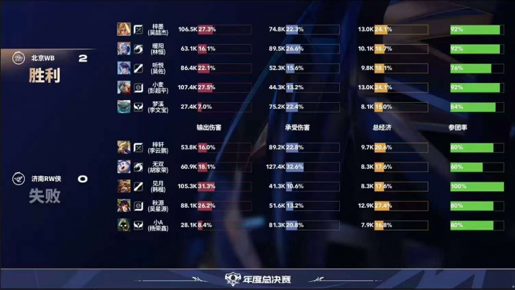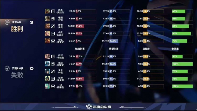 直播吧10月12日讯2025KPL年度总决赛突围赛,本场比赛是由北京WB对阵到济南RW侠,败者离场RW能否调整状态战胜WB,让我们一起期待!第一局:RW双方各WV打的有来有回,但是中期龙团WB再次拿下优势后成功利用龙兵推掉水晶拿下胜利!第二局:WB凭借团战配合多次打赢团战控下资源打出节奏,后期RW团战完全顶不住被WB轻松拿下!第三局:RW前期拿到优势但是龙团被WB打回,WB随后利用龙兵完成推进,WB拿下暴君后拿下比赛胜利!第四局:双方前期有来有回,中期梓墨影强换阿离帮助WB成功拿下胜利!