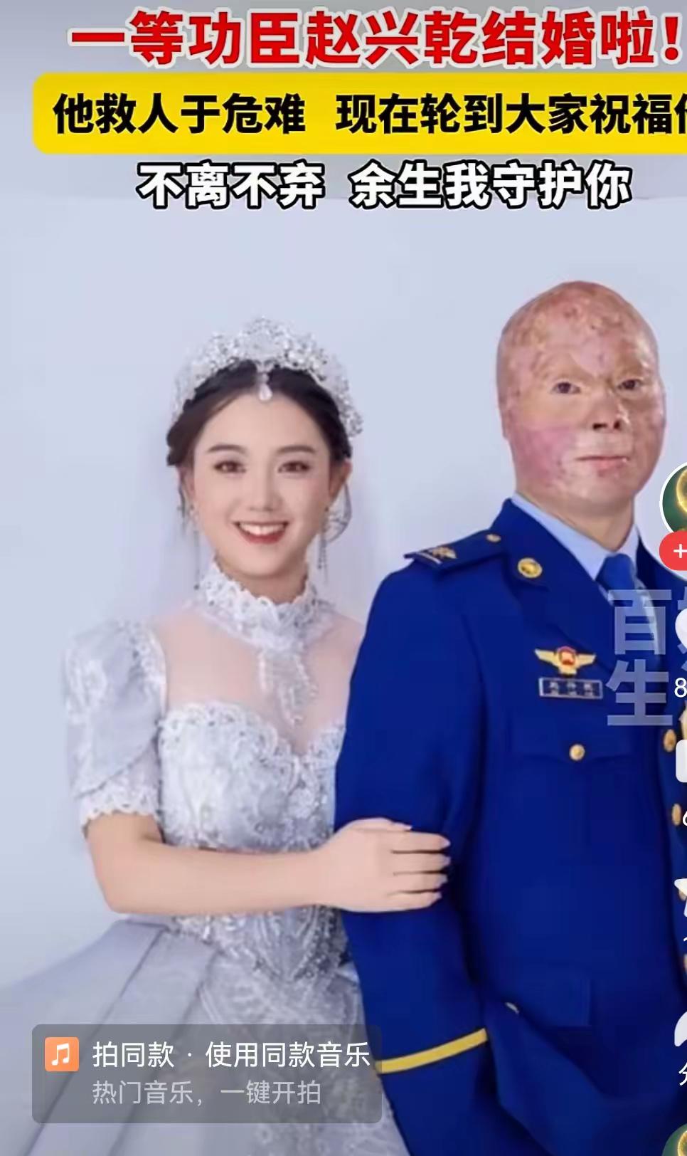 一等功臣赵兴乾结婚啦! 新时代最可爱的人。用生命诠释为人民赴汤蹈火,在所不辞的革命精神。这才是真正的大明,网红。向英雄致敬,为一对新人送上最美好㊗️福。英俊的战士,让人泪奔。