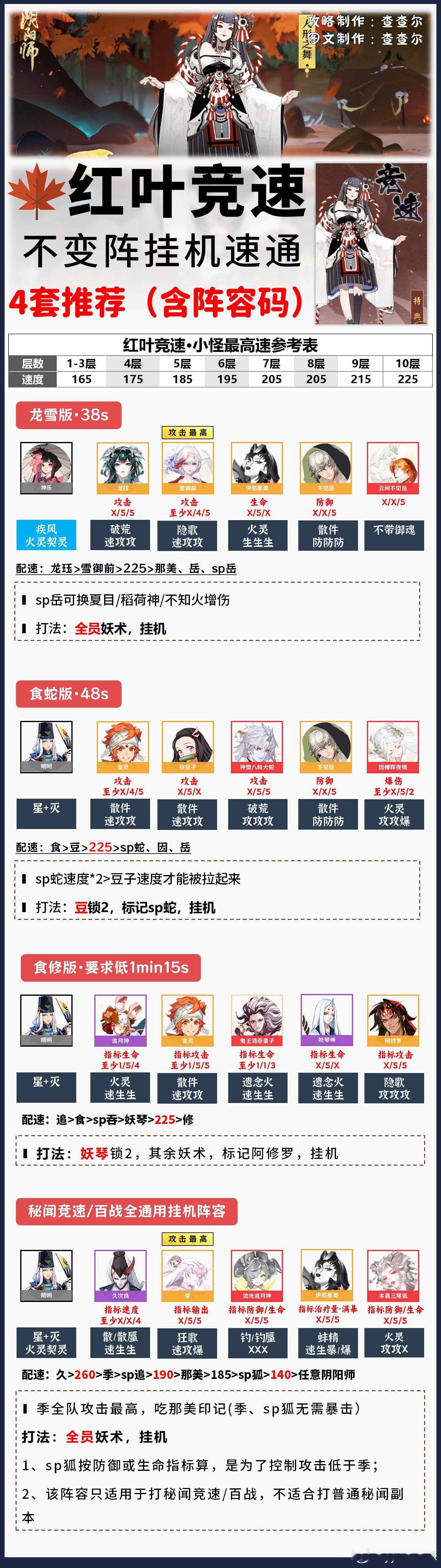 阴阳师手游[超话]超话创作官游戏百科【红叶竞速】1-10层不变阵挂机,4套+阵