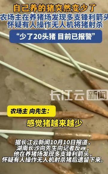 “严查到底!”10月7日,湖南长沙,一男子在山上散养猪,他外出一个多月回来后,发现猪少了很多,就前往山上寻找,结果找到了十几支金属箭头!男子怀疑有人趁他不在期间溜进猪场,用无人机空投弓箭杀猪。网友:会不会误认为野猪了? 眼下天气慢慢转凉,山上的草木开始枯萎,向先生的脚步却没停下,每天还是雷打不动地在猪场周边巡逻。 他跟老婆说:“这些猪养了五年,就跟自家孩子似的,现在一点消息都没有,心里总不踏实。” 老婆只能一遍遍安慰他,让他相信警方会尽快有结果,眼下先把防护做好,别再出别的事。 其实向先生早就行动起来了,自从向警方反映情况后,他就从网上订了夜间监控摄像头和简易的反无人机干扰器。 安装监控那天,附近养牛的张师傅还有其他几个养殖户都过来搭把手,张师傅一边拧螺丝一边念叨:“之前总觉得山里清净安全,哪想到会出这种事,我回去也得装几个摄像头,晚上多起来瞅几眼才放心。” 向先生还把自己找到箭头的细节、推测的作案过程整理成文字,发到了当地养殖户的交流群里,再三提醒大家多注意防范。 只是几天过去,向先生还是忍不住往山上跑,希望能找到猪的踪迹,哪怕是一点残留的痕迹也好,可每次都是空着手回来,失望一次比一次重。 这边向先生忙着加固防护,那边警方的勘察也在紧锣密鼓地推进。 民警重点查看了无人机可能起降的区域,在距离猪场两公里外的一片空地上,发现了几处疑似无人机停留的痕迹,地面上有轻微的轮胎压印。 还捡到了一小块疑似无人机外壳的塑料碎片,现在已经把碎片带回做技术鉴定,盼着能从碎片里找到设备型号或者使用者的信息。 当地派出所也跟向先生反馈了最新进展,说目前正在排查近期周边地区的无人机飞行记录,同时也在走访附近的五金店、户外用品店,问问有没有人买过类似的三菱箭头,案件还在一步步推进。 网上关于这事的讨论也没断过,有做无人机销售的网友留言说,现在正规平台卖的带热成像仪的无人机都得实名登记,飞行轨迹也能查到,只要警方能确定大致的作案时间,顺着这个线索查,应该能找到使用者。 也有人提出,护农队猎杀野猪的时候,按规定得有明确的报备流程和作业范围,建议相关部门查一查近期长沙周边有没有护农队在这一片开展过捕猎行动,先排除误操作的可能。 不过也有网友担心,要是作案的人用的是改装过的无人机,或者是从非正规渠道买的,可能会给调查增加不少难度。 不少网友都在等后续消息,有人说“希望能快点抓到人,让向先生少受点损失”,还有人说“这事也给相关部门提了个醒,得赶紧把无人机管理的漏洞补上,别再让不法分子钻空子”。 长沙丢猪案引发的社会讨论,本质是科技应用与民生安全的碰撞。 多数人对无人机沦为潜在作案工具感到担忧 —— 这种本用于航拍、植保的设备,竟能通过热成像仪配合弓箭猎杀家畜,让不少人意识到 “科技便利” 背后的监管空白,尤其担心类似手段若被滥用,可能威胁更多农户财产甚至人身安全。 对养殖行业而言,此案成了一记重要警示。 原本认为 “山林偏远更安全” 的养殖户,开始主动加装监控、反无人机设备,当地养殖群里的防范交流也多了起来,这种 “抱团避险” 的意识转变,让行业对新型风险的警惕性显著提升。 毕竟,只有让科技在规则内运行,才能既发挥其价值,又守护好普通人的生计安全。 那么到最后,你们是怎么看待这件事情的呢? 如果各位看官老爷们已经选择阅读了此文,麻烦您点一下关注,既方便您进行讨论和分享,又能给带来不一样的参与感,感谢各位看官老爷们的支持!