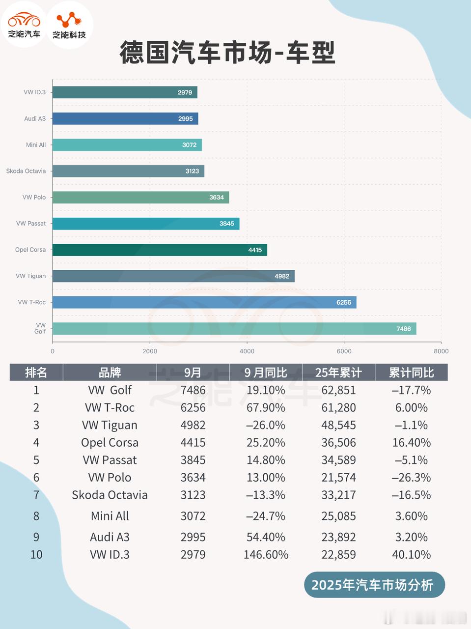 2025 年 9 月德国新车注册量同比实现两位数增长,累计销量已接近疫情前水平。