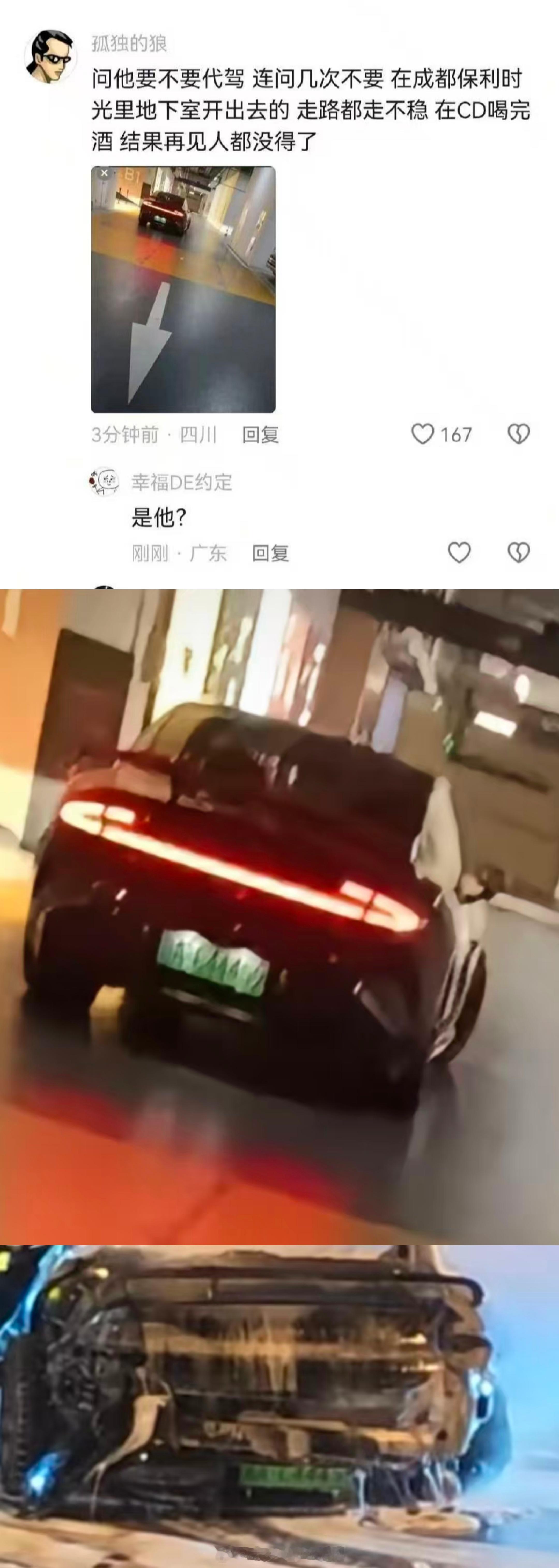 对了下事故现场车牌应该是跟这个代驾说的同一个车,如果真按照他的,那这司机肯定是酒驾了,而且还有超速驾驶行为,1.5秒直接拉开五个车位…