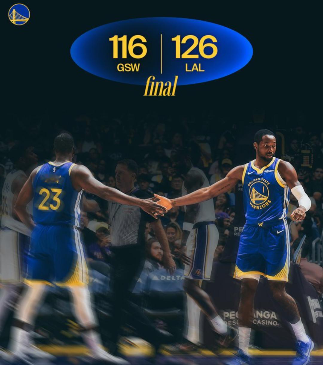 今日比赛 金州勇士116-126不敌洛杉矶湖人队遭季前赛首败