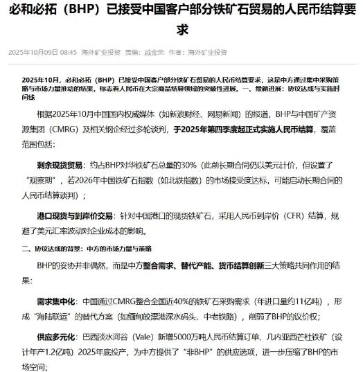 中国买矿石坚持用人民币,不玩美元那一套了。美国让澳大利亚必须用美元卖,结果自己又