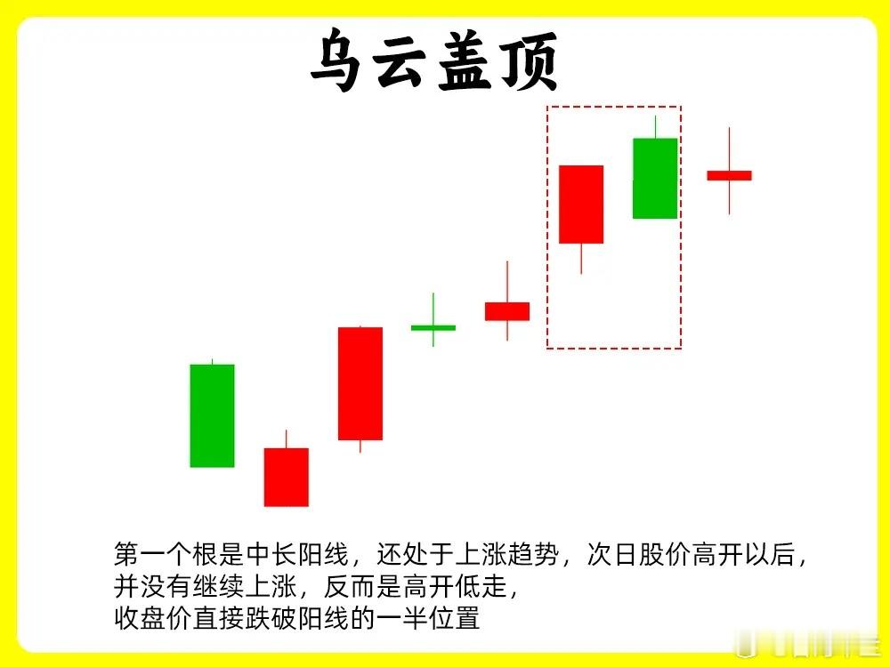 在上涨趋势的末期,出现这两根K线,一根是中长阳线,次日低开后的中长阴线。这个有个细节,下跌的阴线低于阳线越多,说明抛压就越重,这是典型的多转空形态,很有可能趋势即将出现改变