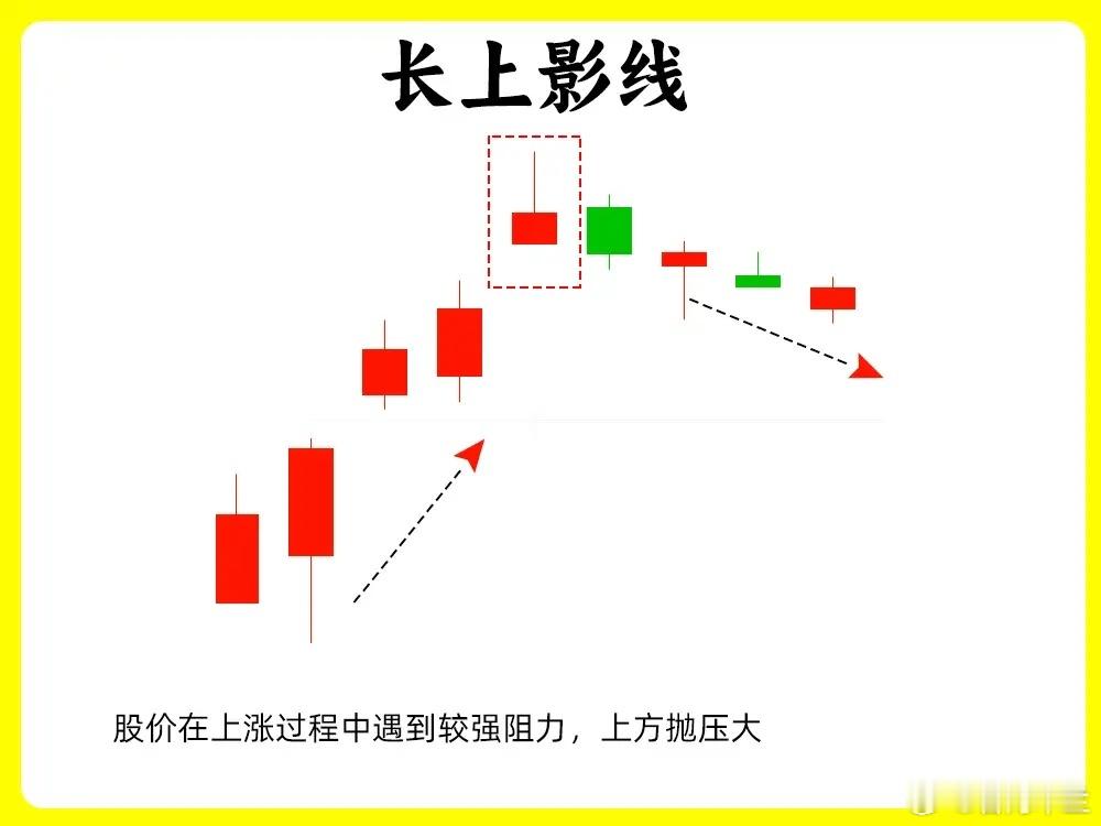 在上涨趋势中,出现放量冲高回落的长上影线,说明股价的上涨的时候,上方遇到比较重的抛压,有很大的阻力,导致股价下跌,上影线越长,说明抛压就越重。如果在高位出现,那就要谨慎了