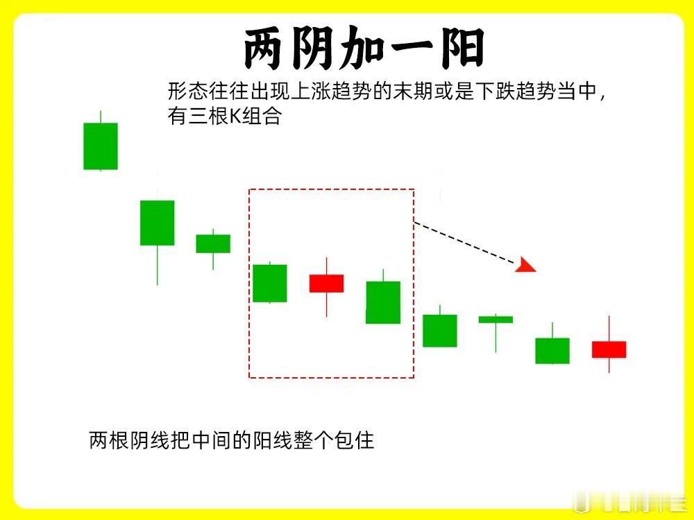 这种形态往往出现上涨趋势的末期或是下跌趋势当中,有三根K组合,第一个放量的阴线,次日是十字星或是小阳线,成交量出现缩量,随后有出现一个放量的阴线,两根阴线把中间的阳线整个包住。
