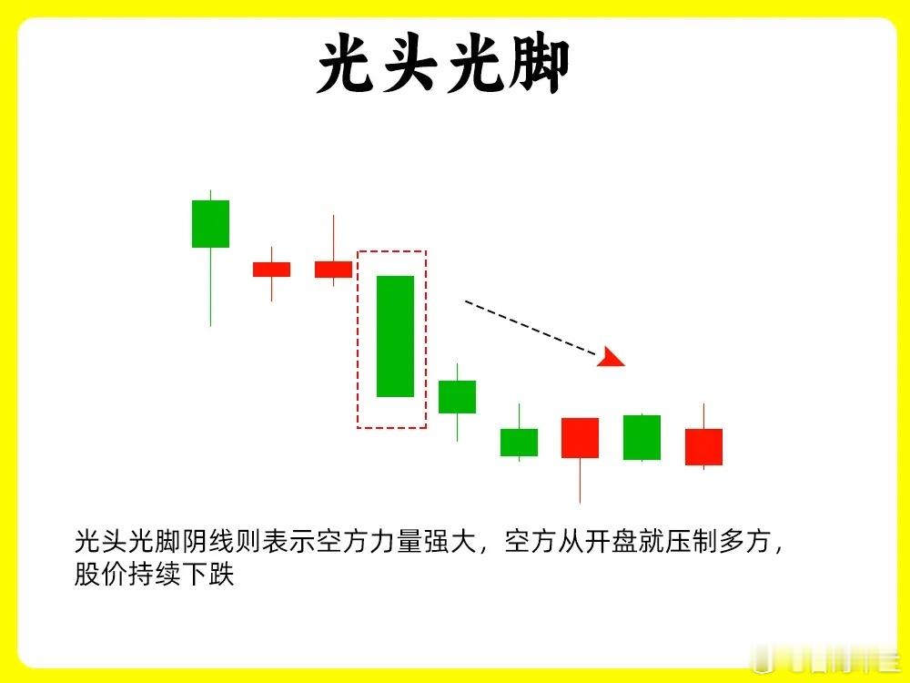 顾名思义,就是一根阴线没有上下影线,阴线越长,说明跌幅越大,抛压就越大。下方没有下影线,多方力量没有反抗的力量