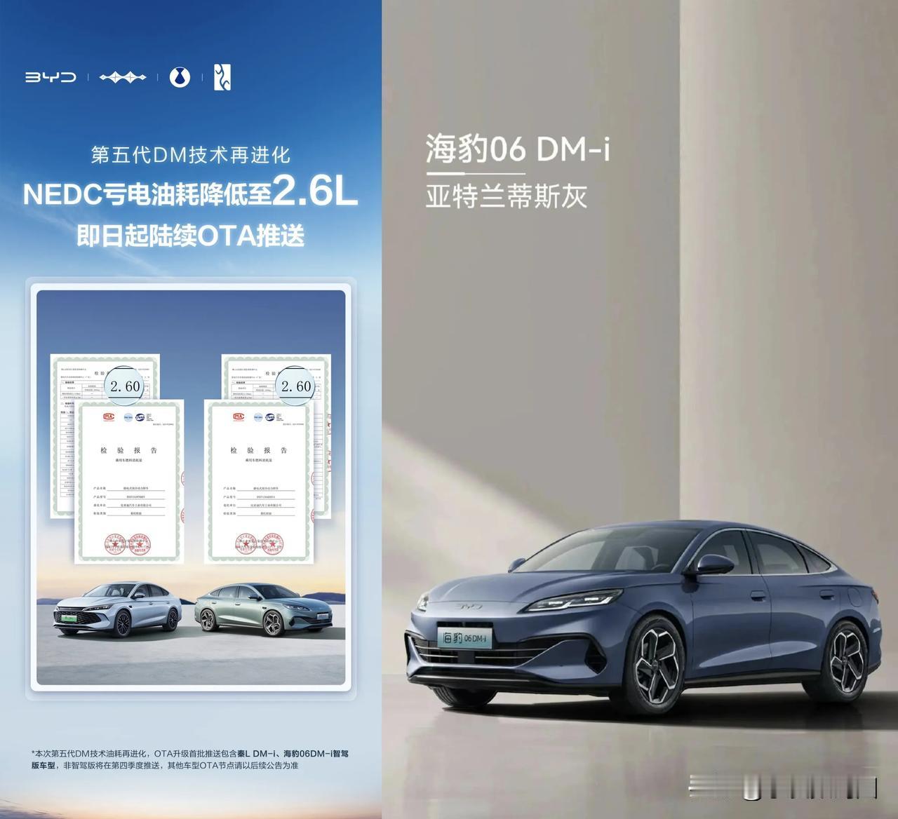 又是实名羡慕比亚迪车主的一天,尤其是第五代DM老车主,比亚迪10月新动作:第五代DM技术OTA,即日起陆续推送,升级后,NEDC百公里亏电油耗进一步降低10%,低至2.6L! 比亚迪DM插混技术已经持续迭代17年了,到第四代的时候百公里亏电油耗突破到了3.8L,到第五代的时候开创了油耗2的时代,这还没完,比亚迪依托AI大模型和AI能耗管理策略,实现了NEDC百公里亏电油耗再降10%,低至2.6L! 来算一笔账哈,比如说海豹06DM-i满油满电行驶2100公里的综合里程,OTA后一箱油还能再省下40-50元! 第五代DM技术发布以来,比亚迪已经将发动机、电驱总成、域控等硬件效率发挥到极致,这个OTA应该是软硬件协同策略的进化,想来也只有比亚迪了,第一比数据量,第二比AI大模型,第三比覆盖的工况数量,也只有像比亚迪这样的ALL IN新能源才能做到了,一句话总结:比亚迪动力美学进阶彰显百万实力!省钱看得见,比亚迪车主确实比较幸福。