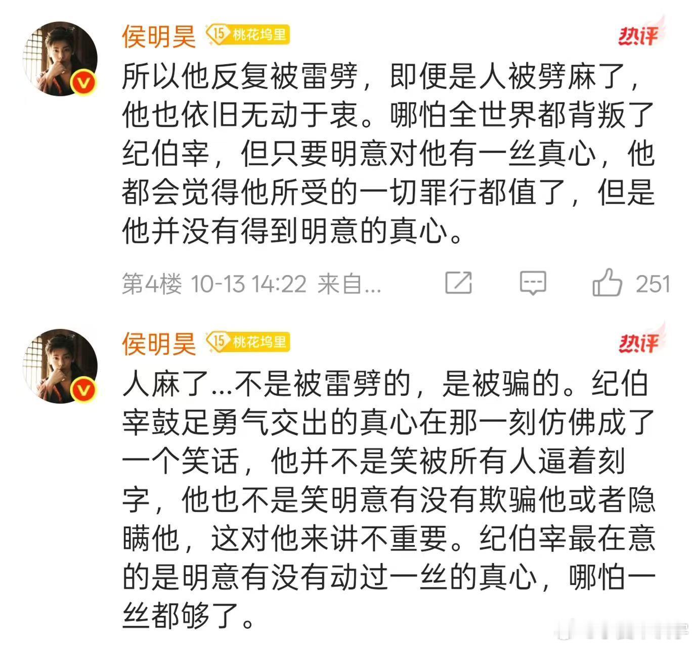 纪伯宰 先爱上的成了输家 纪伯宰从表面风流倜傥到内心逐渐崩塌,爱情让他在不知不觉中输了自己。侯明昊完美呈现了这种复杂情感,让“心甘情愿的败北”成为最动人的苏感。