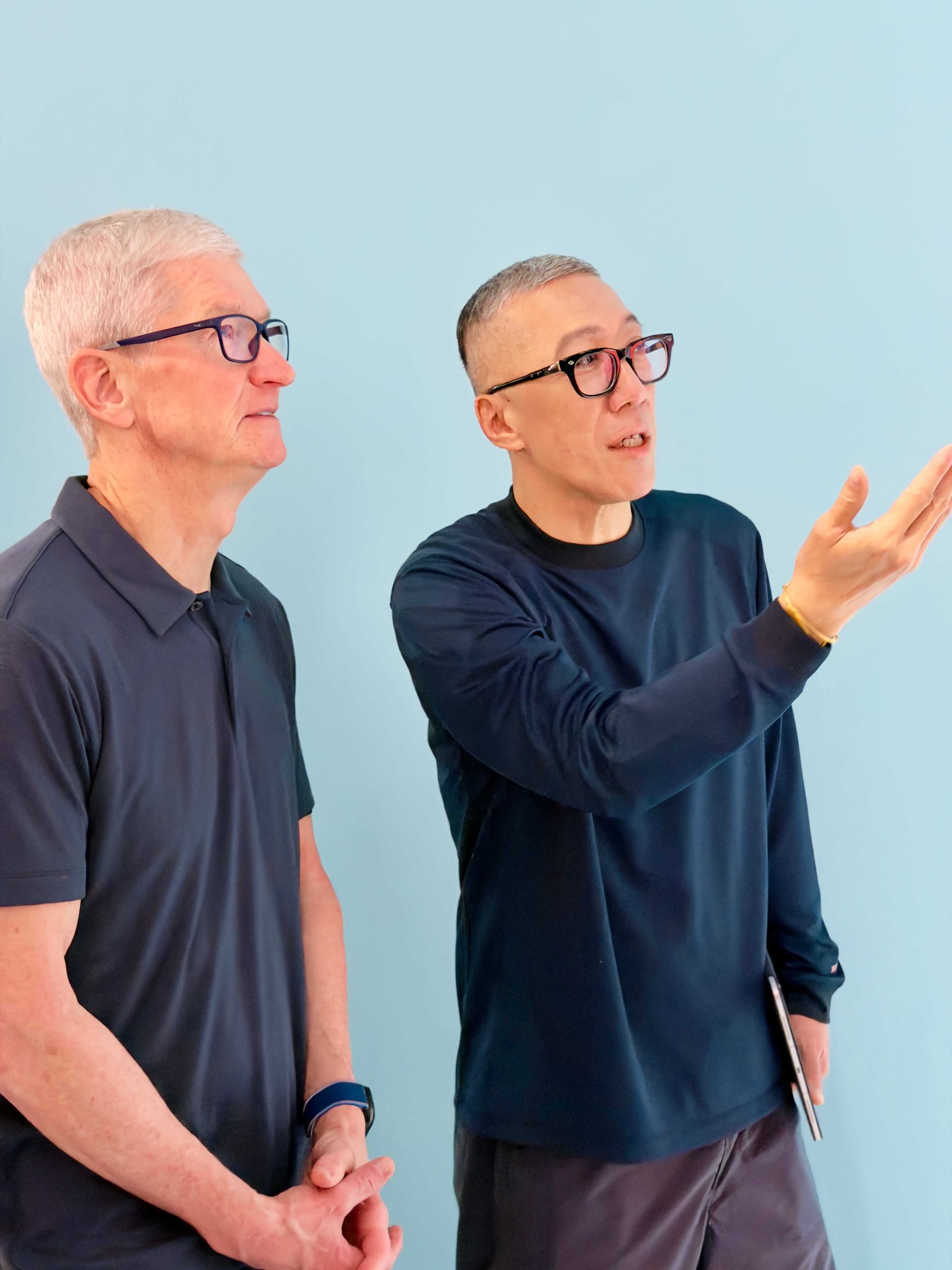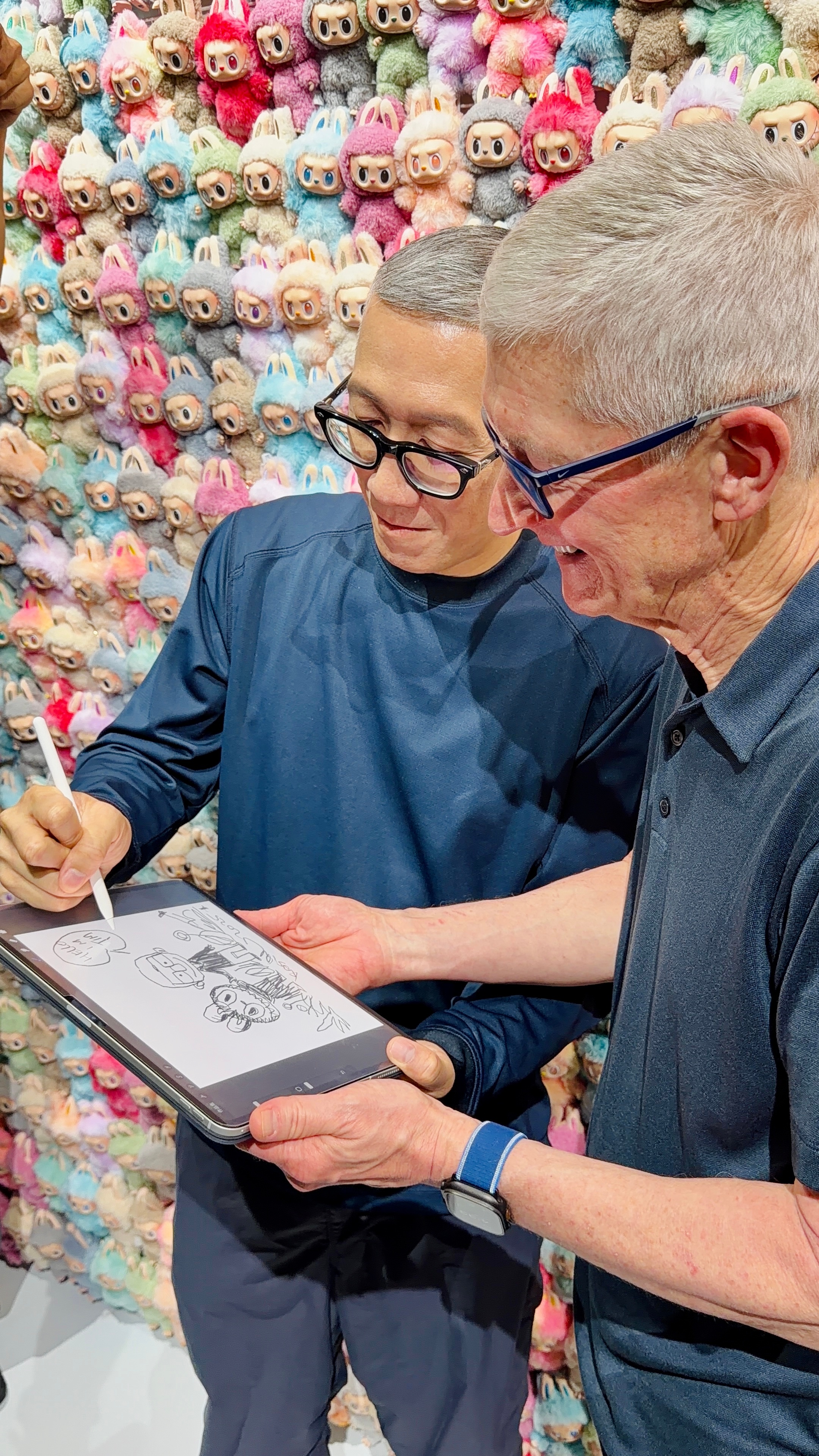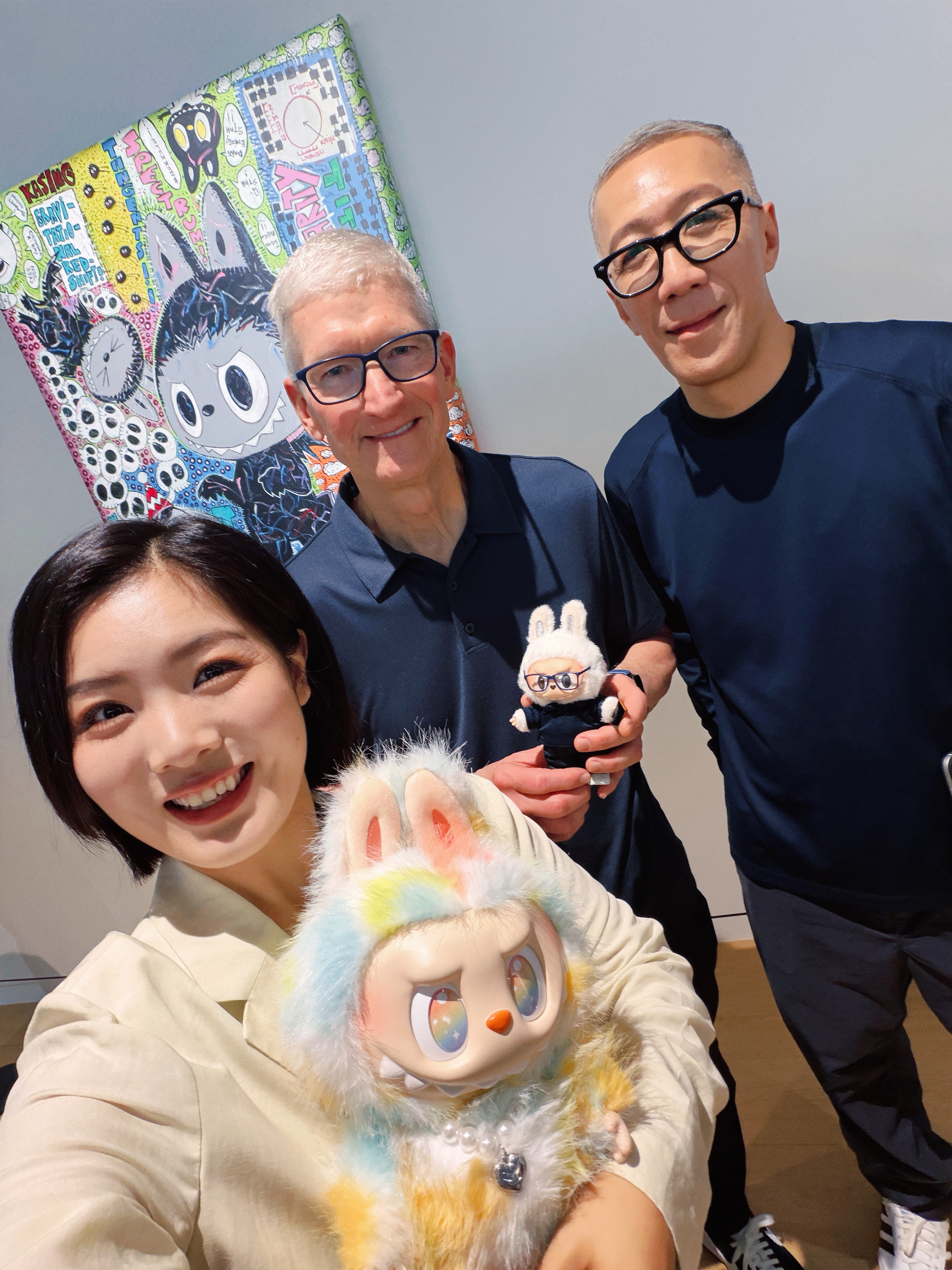 苹果CEO库克和Labubu之父同框 苹果CEO库克中国行首站,来看Labubu十周年巡展啦~