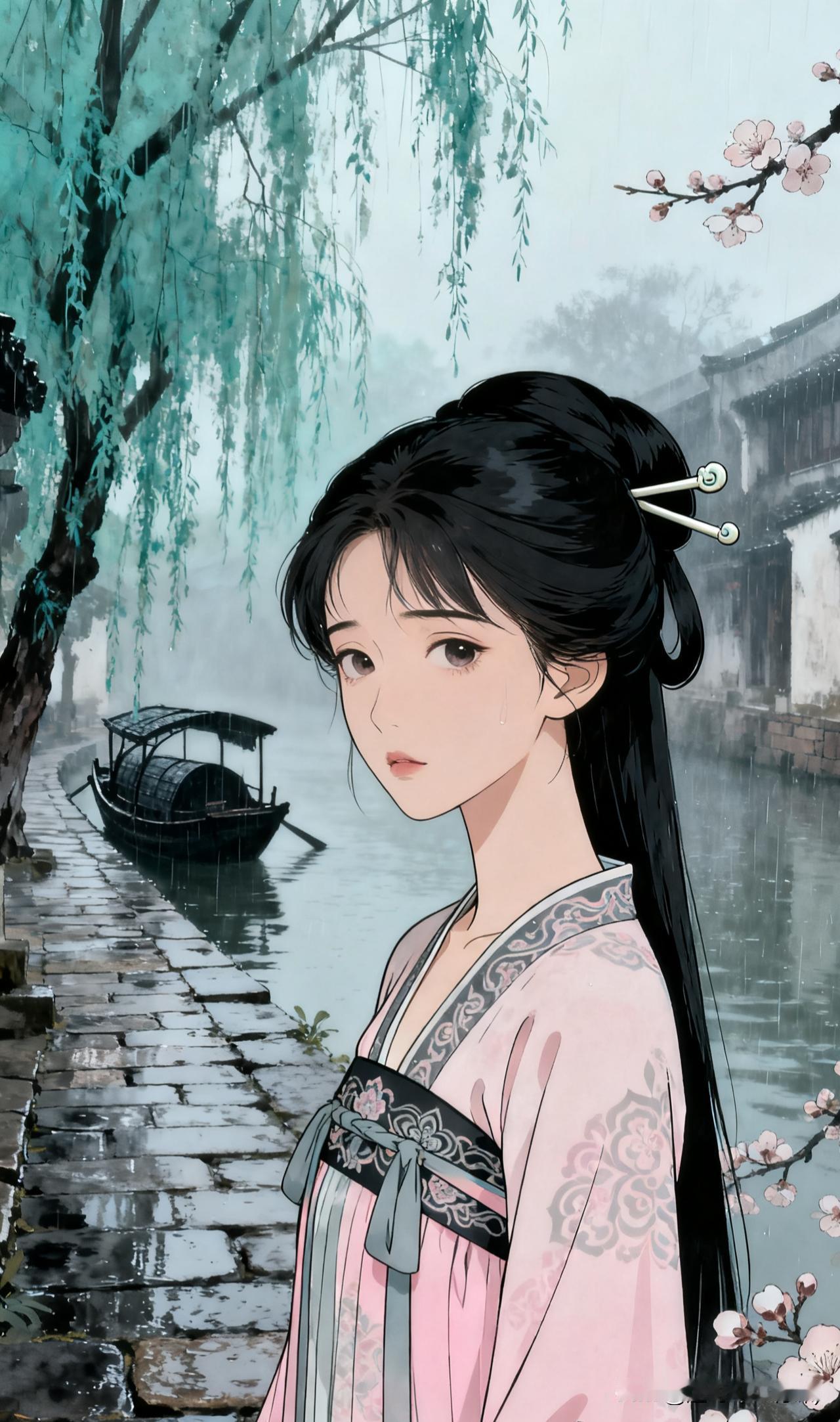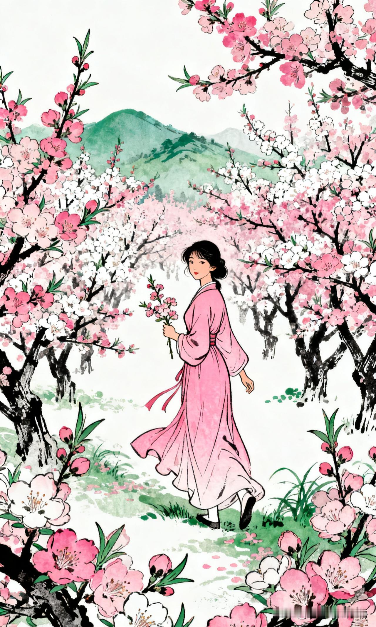 鹧鸪天•《观花-赋》文/青云风拂青丝绕玉肩,珠玑缓步立海边;潮声漫伴倾心
