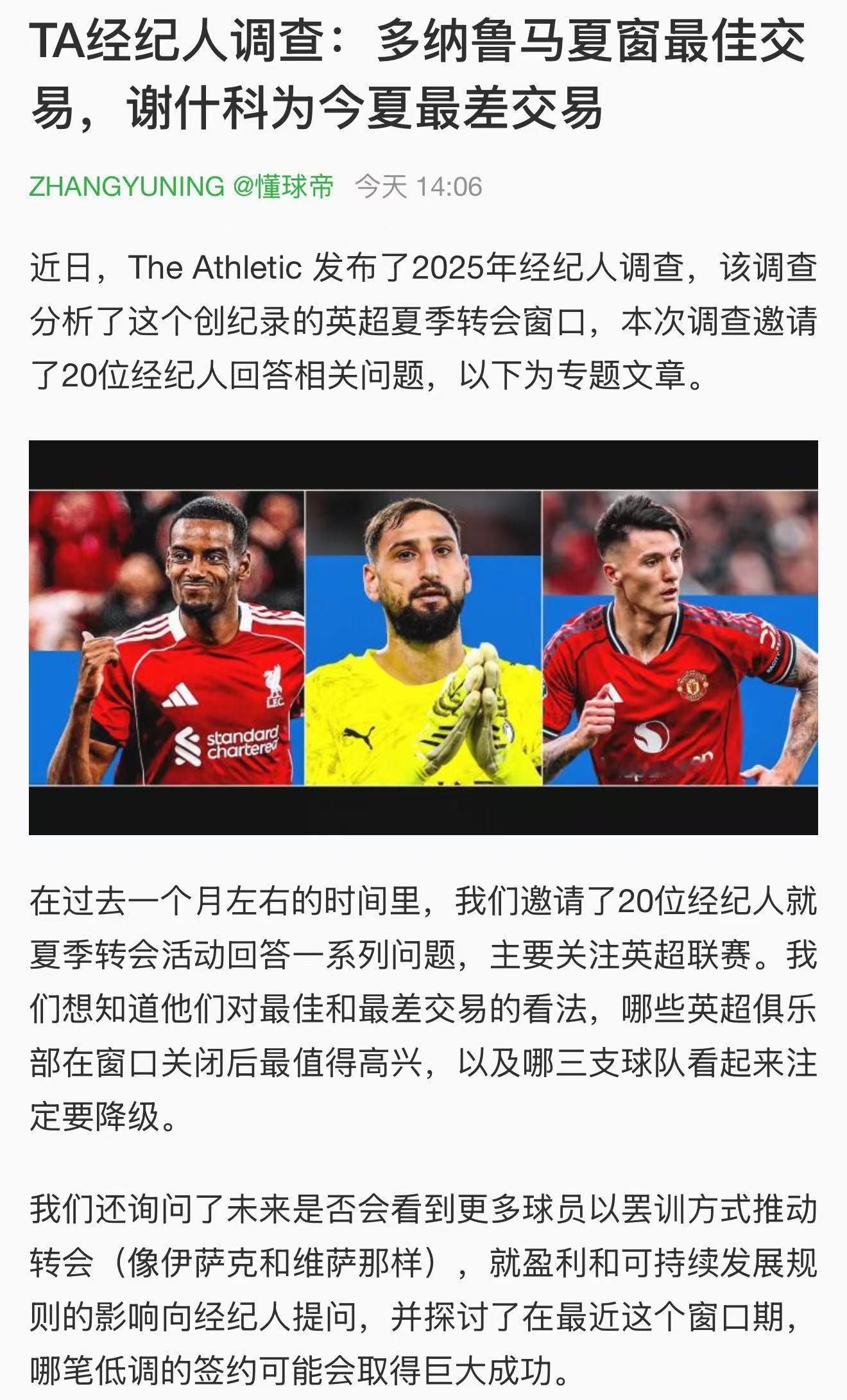 是不是最差交易,肯定要结合球队上赛季排名来看。目前维尔茨这个趋势比较大,谢什科、哲凯等球员最多就算个溢价。