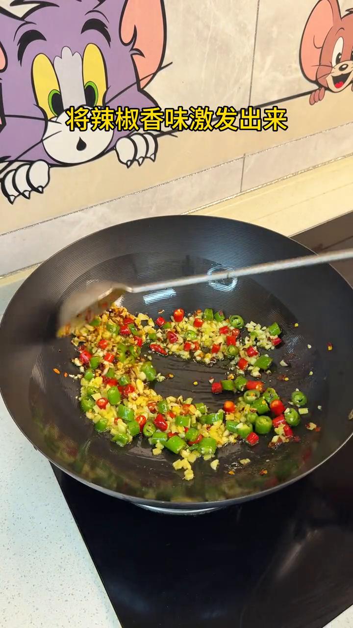 牛肉炖萝卜丝。 ·热锅热油下萝卜丝,开中小火慢炒,将萝卜丝水气煸炒出来。 ·接着下半勺盐、适量老抽,开大火炒出酱香味备用。 ·另起锅下姜、蒜、一勺干辣椒、青红椒圈,将辣椒香味激发出来。 ·倒入腌制好牛肉,下半勺味精、胡椒粉,淋入香油,随便翻炒几下,将调料翻炒均匀。 ·炒好牛肉铺在萝卜丝上面,撒上葱花就好了。
