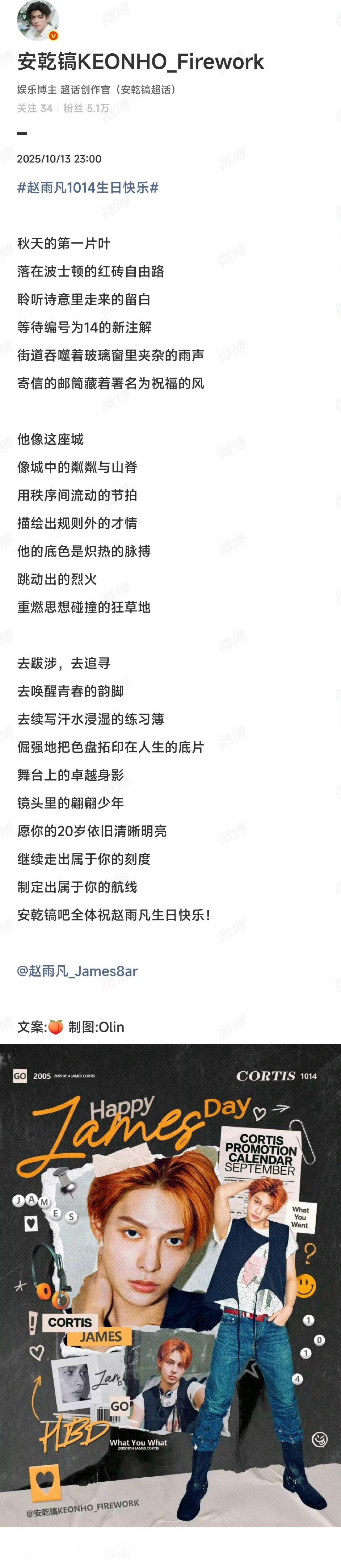 Cortis站子第一次生贺!成员赵雨凡生日,其它四位成员站子的生日祝福贺图还有藏