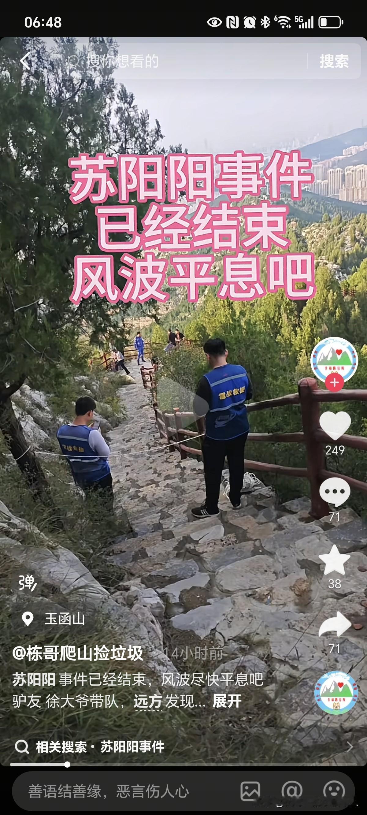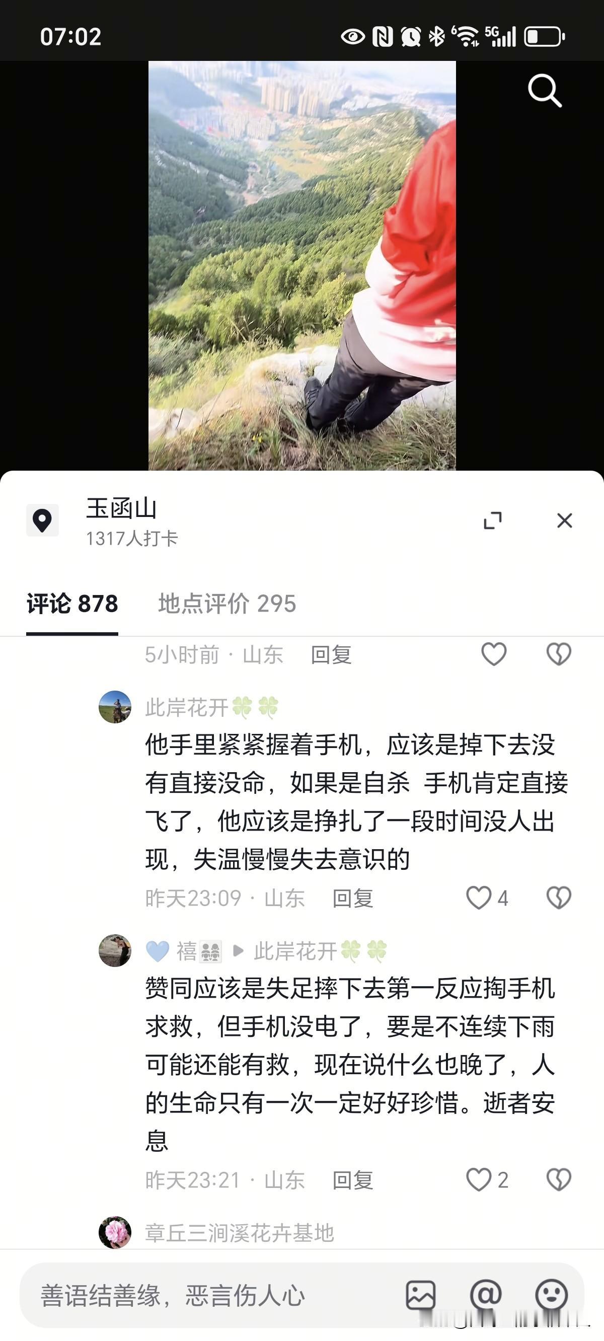 山东济南29岁失联男子苏阳阳在10月13号下午已经找到了,可惜失去了生命,坠落的山崖下,直线距离领秀城小区仅剩2公里,说明一直在往家的方向走。如果不是天黑没灯或者是大雾下雨戴眼镜看不清道路,回家那条路是安全性很高。 这种山体公园有个特点就是护栏不是连续有缺口,别看路面修的非常连续平整,指不定哪个位置铺装路面的延伸处,没护栏的地方下面就是悬崖,从10月4号以来,能见度实在太差了! 另外救援队员说:找到苏明明的时候,手上拿着手机,证明掉下去没有直接没命,第一时间想拿手机求救,但没电了,挣扎了一段时间,最后一直没人出现。父母坐在玉函山的台阶上抱头痛哭,这也是最后一次上山了吧[流泪]。 关于自尽还是意外,网友都有不同的意见,这一切都要等法医的后续鉴定,不过目前综合情况来看,意外概率很大。