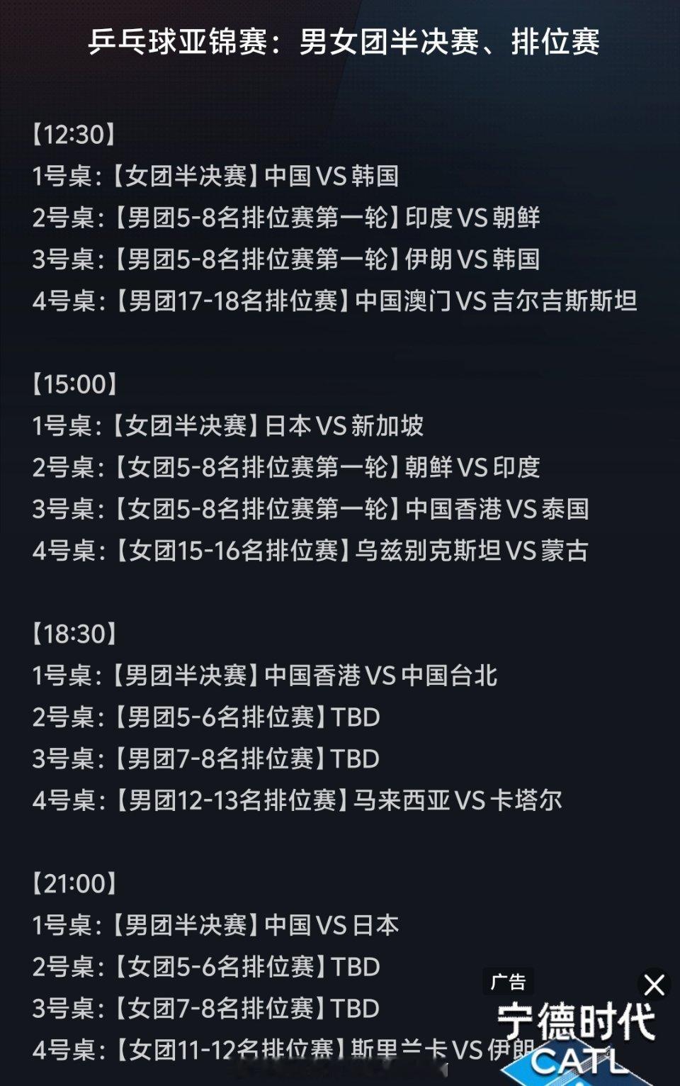 📍【2025亚洲乒乓球团体锦标赛】男女团半决赛