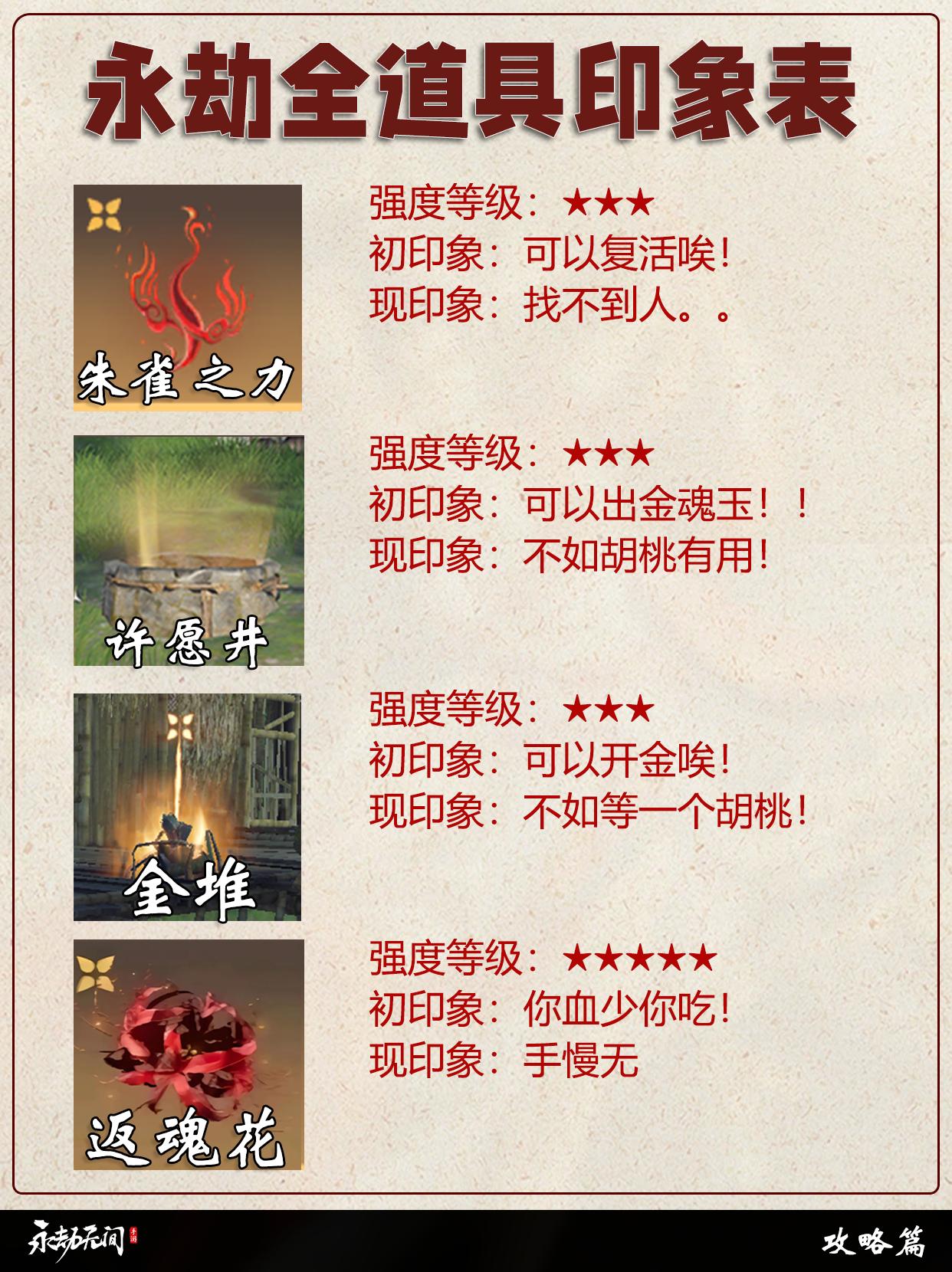 永劫全道具印象表。