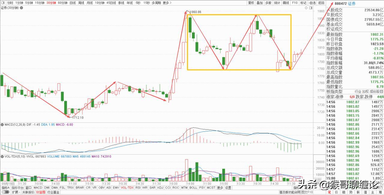 券商板块今天可以平盘,也可以上涨,就是不能下跌,一旦破了昨天低点,整个短线结构都会陷入被。因为昨天已经打到前面低点附近,目前看有构建一中枢上涨结构的迹象,就看这里能否直接向上走出离开段,从而带动整个短线结构走强。