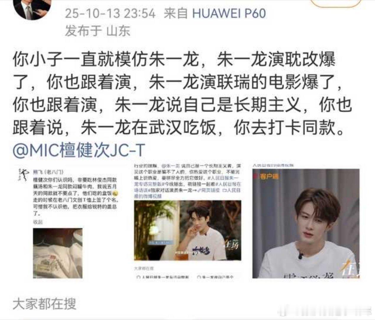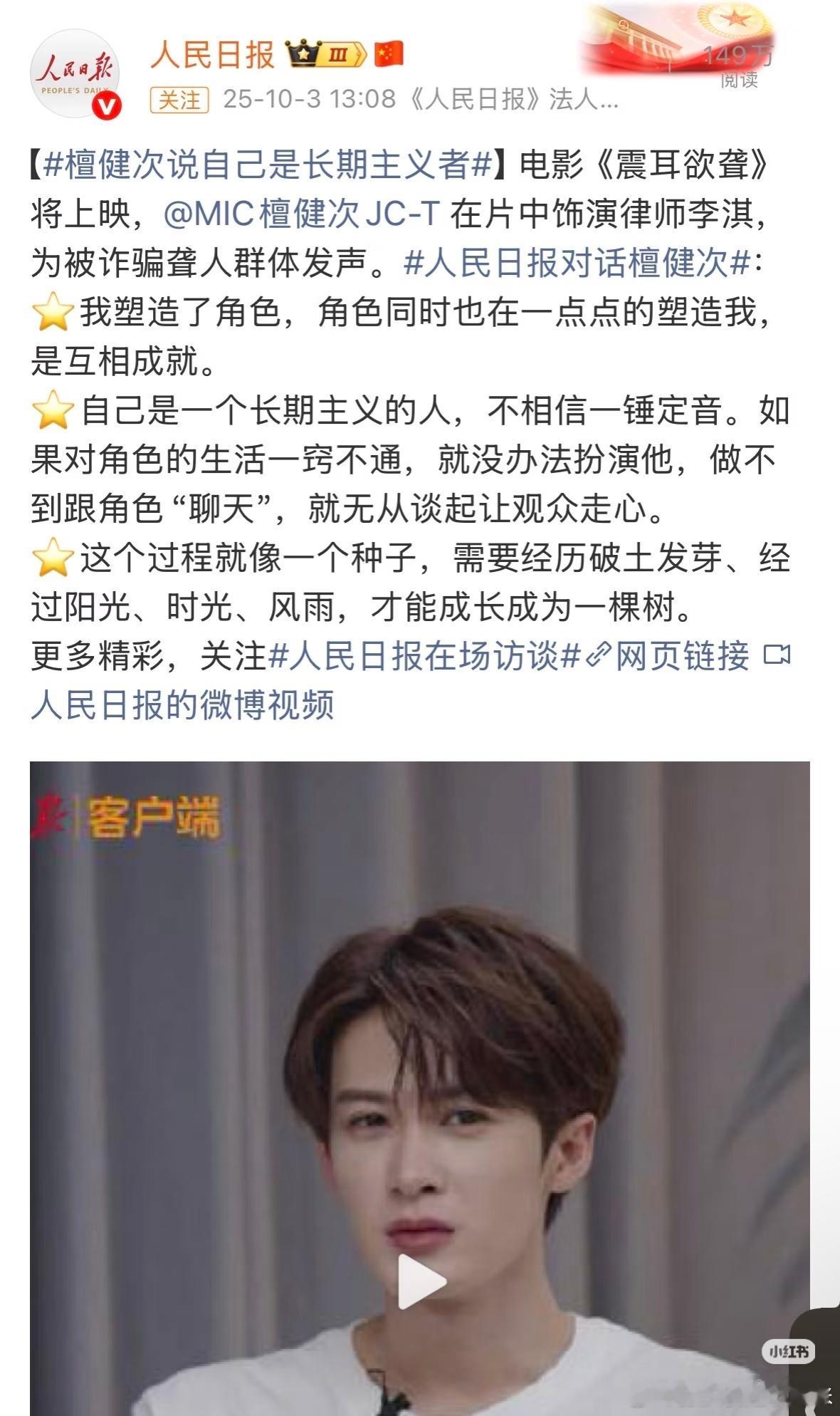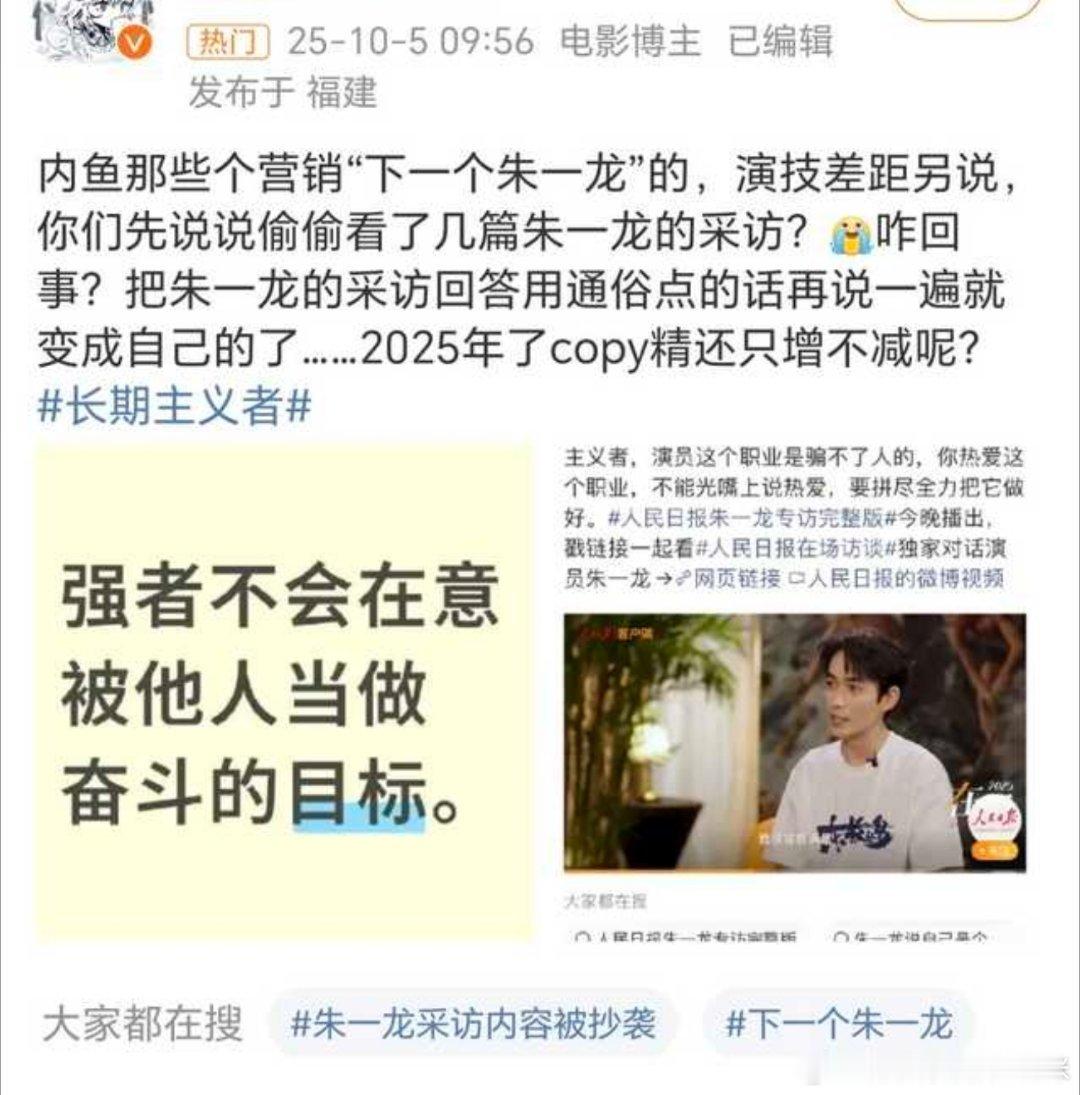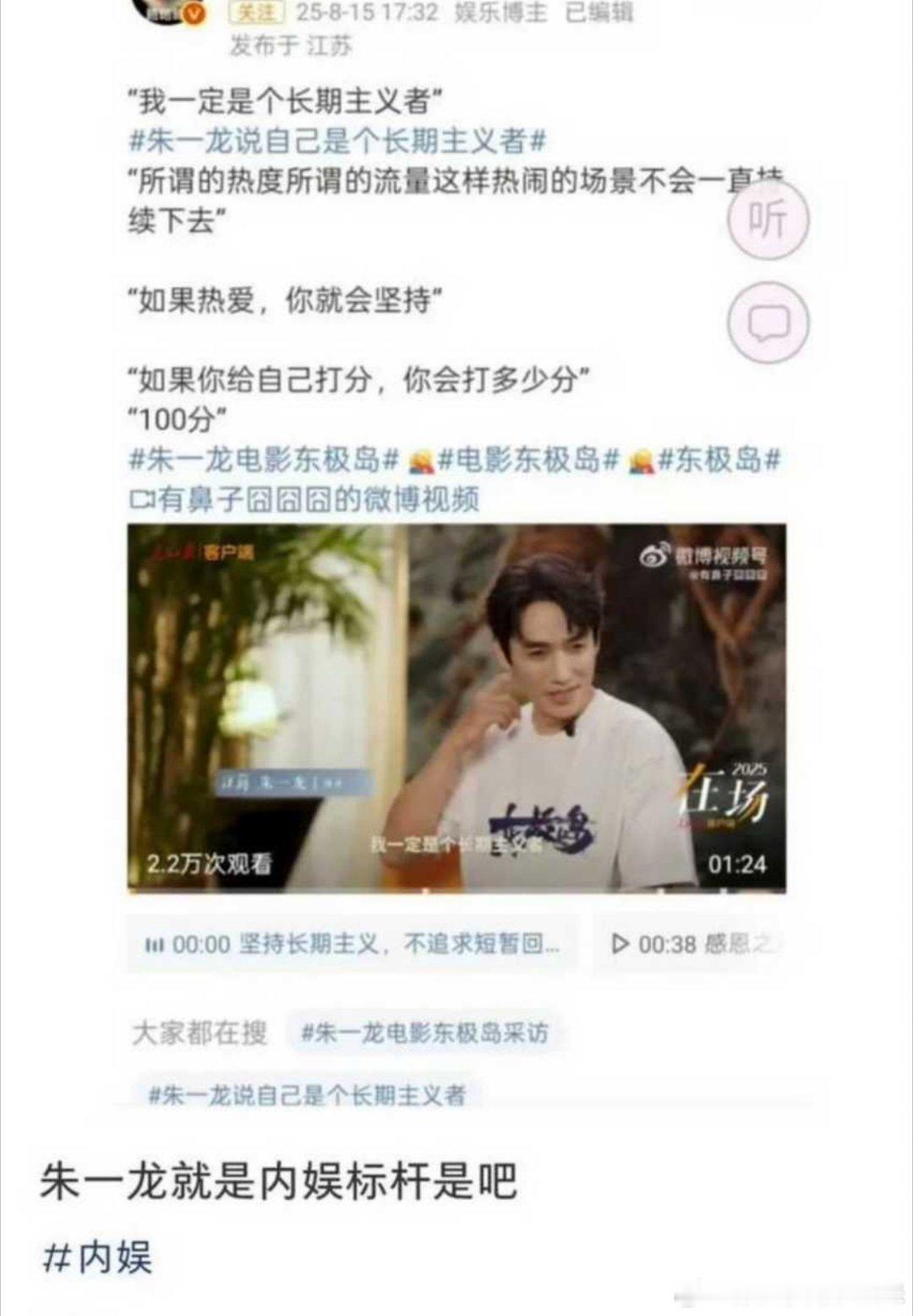 而且跟檀健次没关系啊[允悲]?人家要拉踩,他能去捂嘴啊[允悲]然后有些朱一龙粉丝就觉得檀在复刻龙的人设,举例了朱一龙在采访里说“长期主义”,说檀健次学,其实檀健次7月也说过,不过这个不重要。因为五月哪吒电影的时候也说过,长期主义这东西就不是谁的原创啊,这是一种理念,人人都可以用,朱老师用,檀老师也可以用,大家用才是真的好用[哈哈]