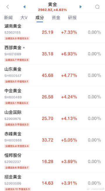【黄金有色金属板块集体爆发 ,中国瑞林、华钰矿业涨停】中国瑞林华钰矿业涨停 A股市场黄金概念股集体上涨,其中,华钰矿业10CM涨停,白银有色涨超7%,合百集团、西部黄金、中国瑞林涨超6%,豫光金铅、盛达资源、湖南黄金涨超5%。