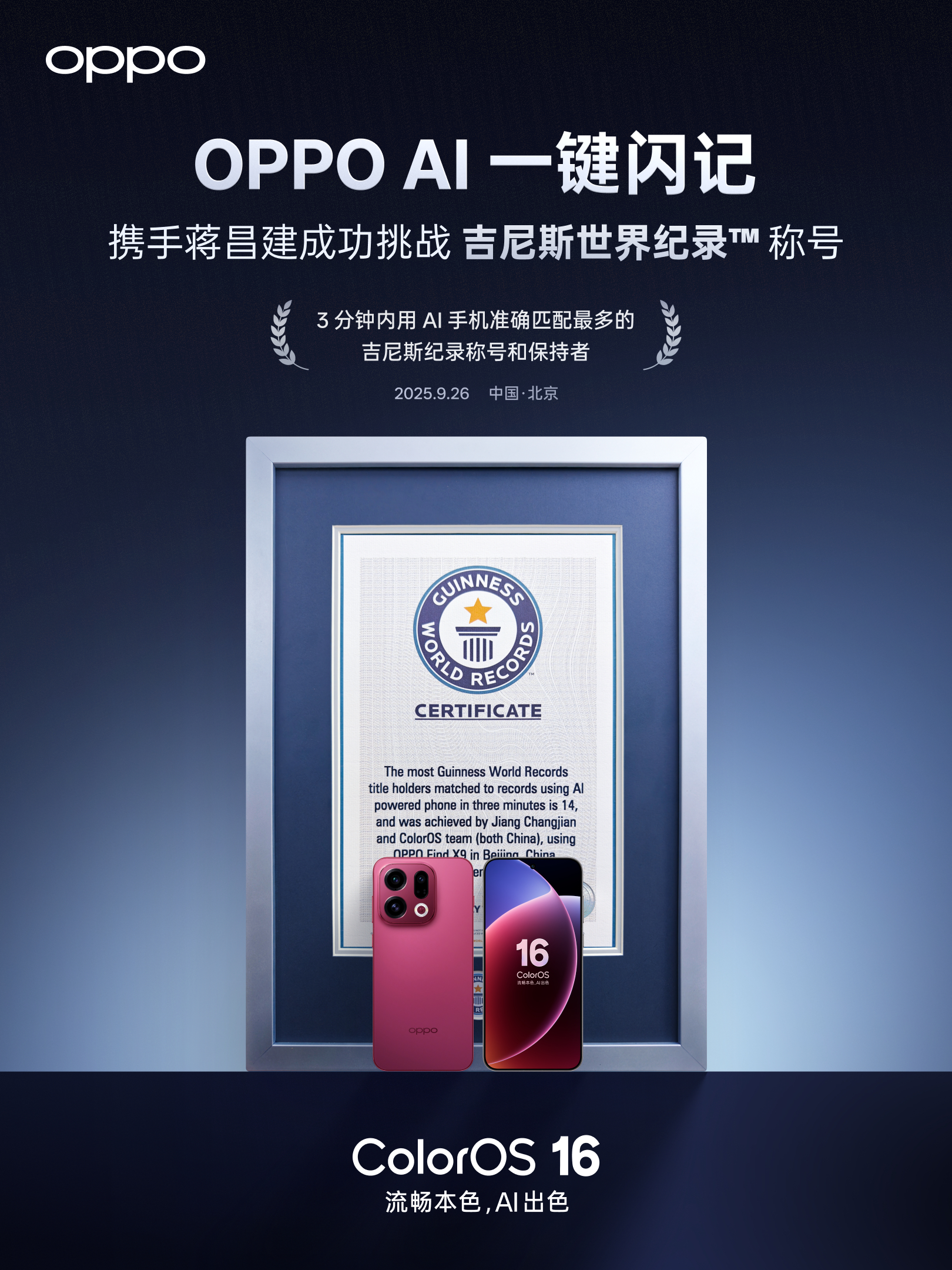 ColorOS16 ColorOS 16又有新的突破了,一键闪记可以记视频了,而且是AI手机行业首发!并且AI一键闪记获吉尼斯世界纪录认证,是3分钟内用Al手机准确匹配最多的吉尼斯纪录称号和保持者。机圈德芙 流畅丝滑