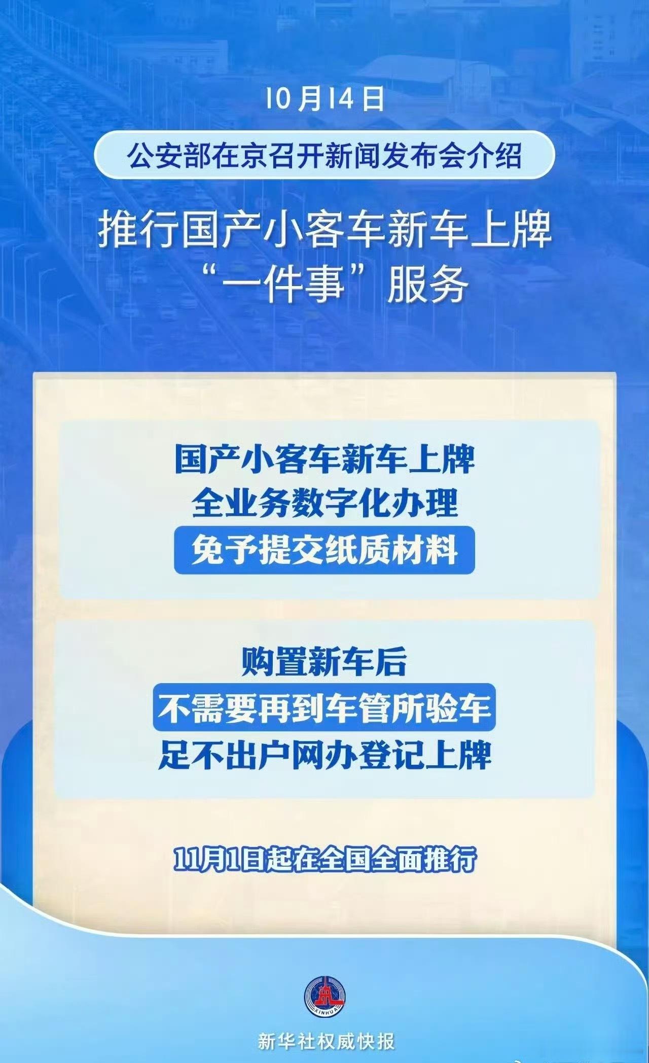 国产小客车新车上牌不用再跑车管所新车上牌也不用跑车管所了喜大普奔[666]
