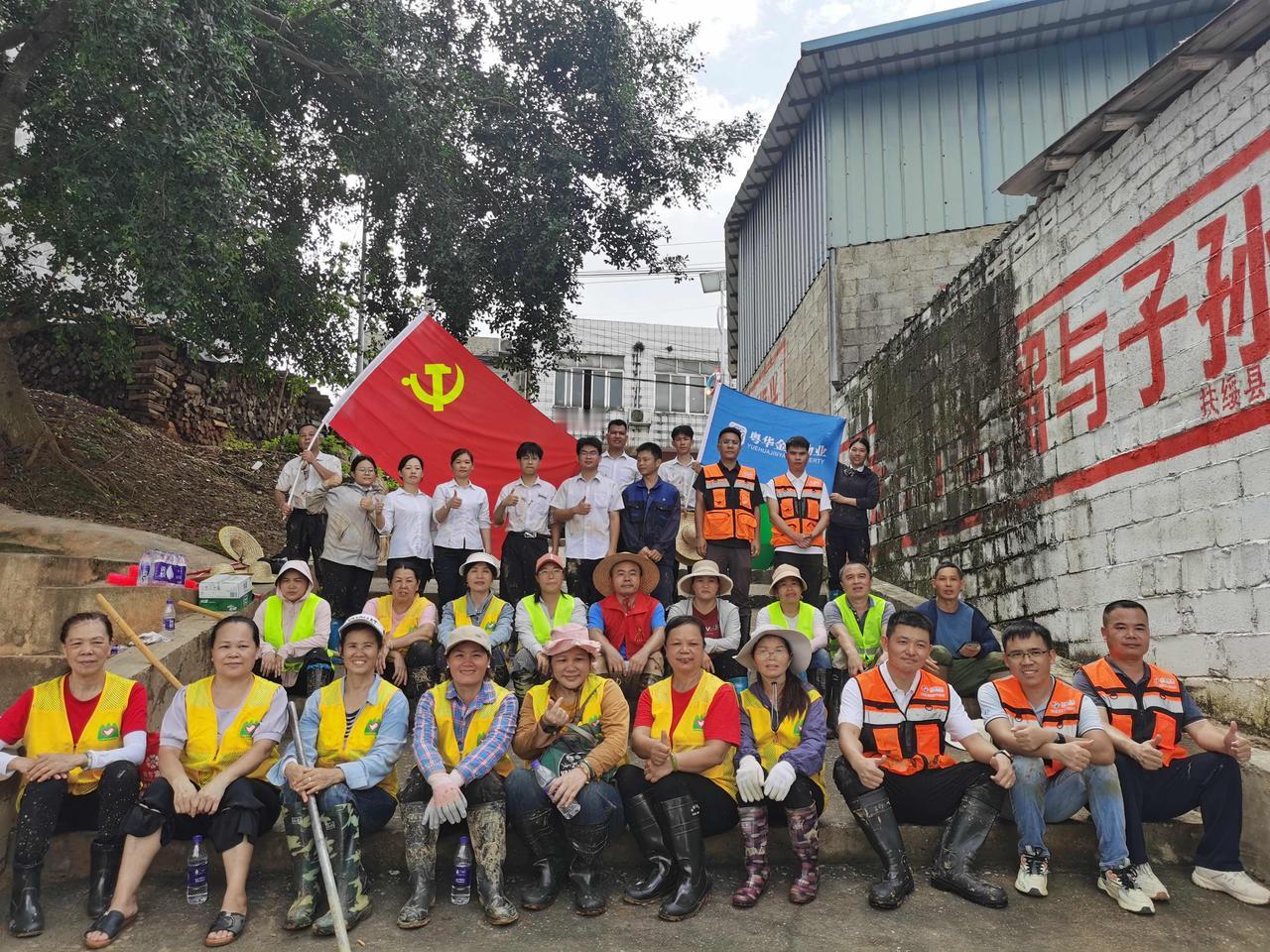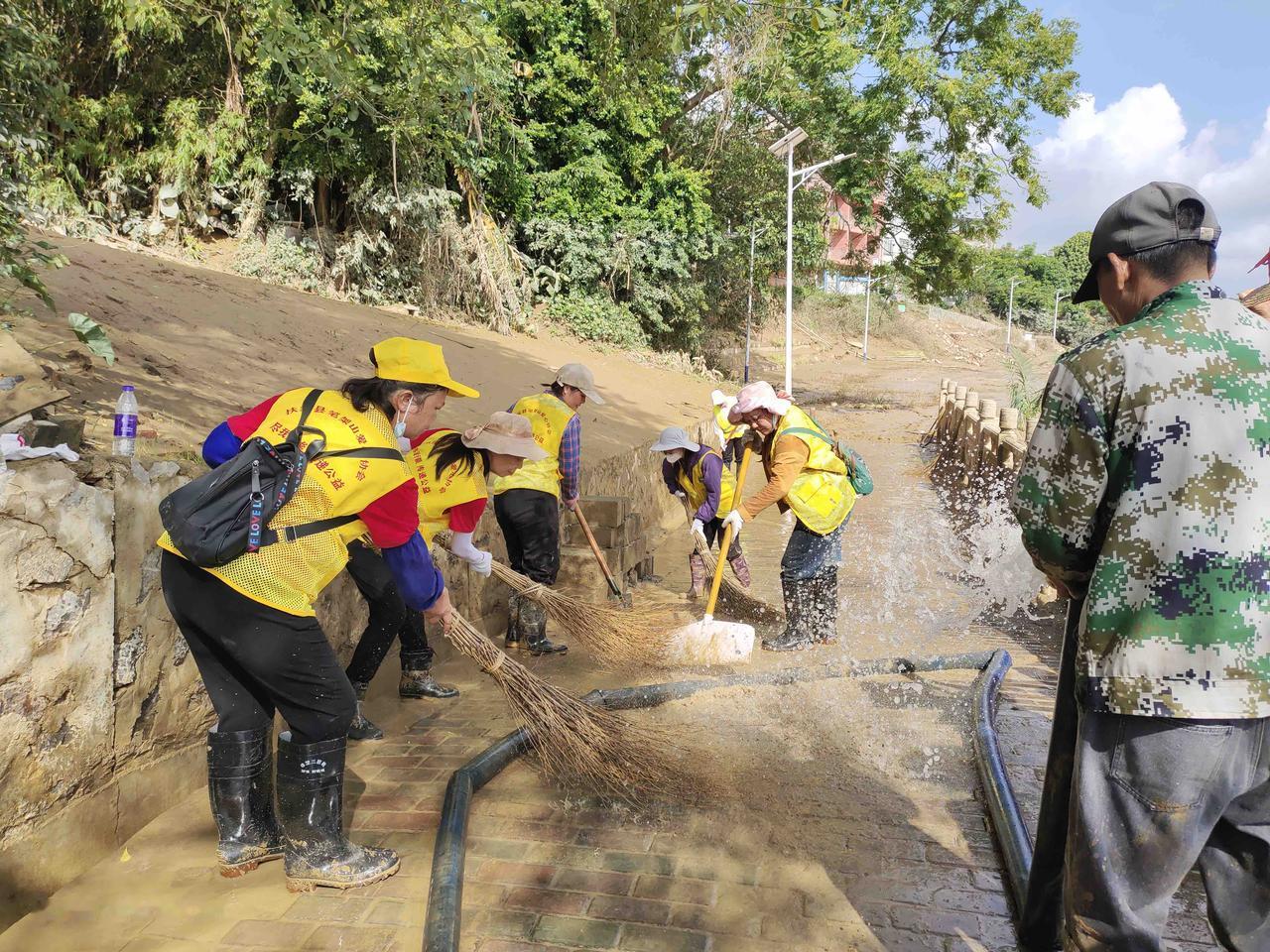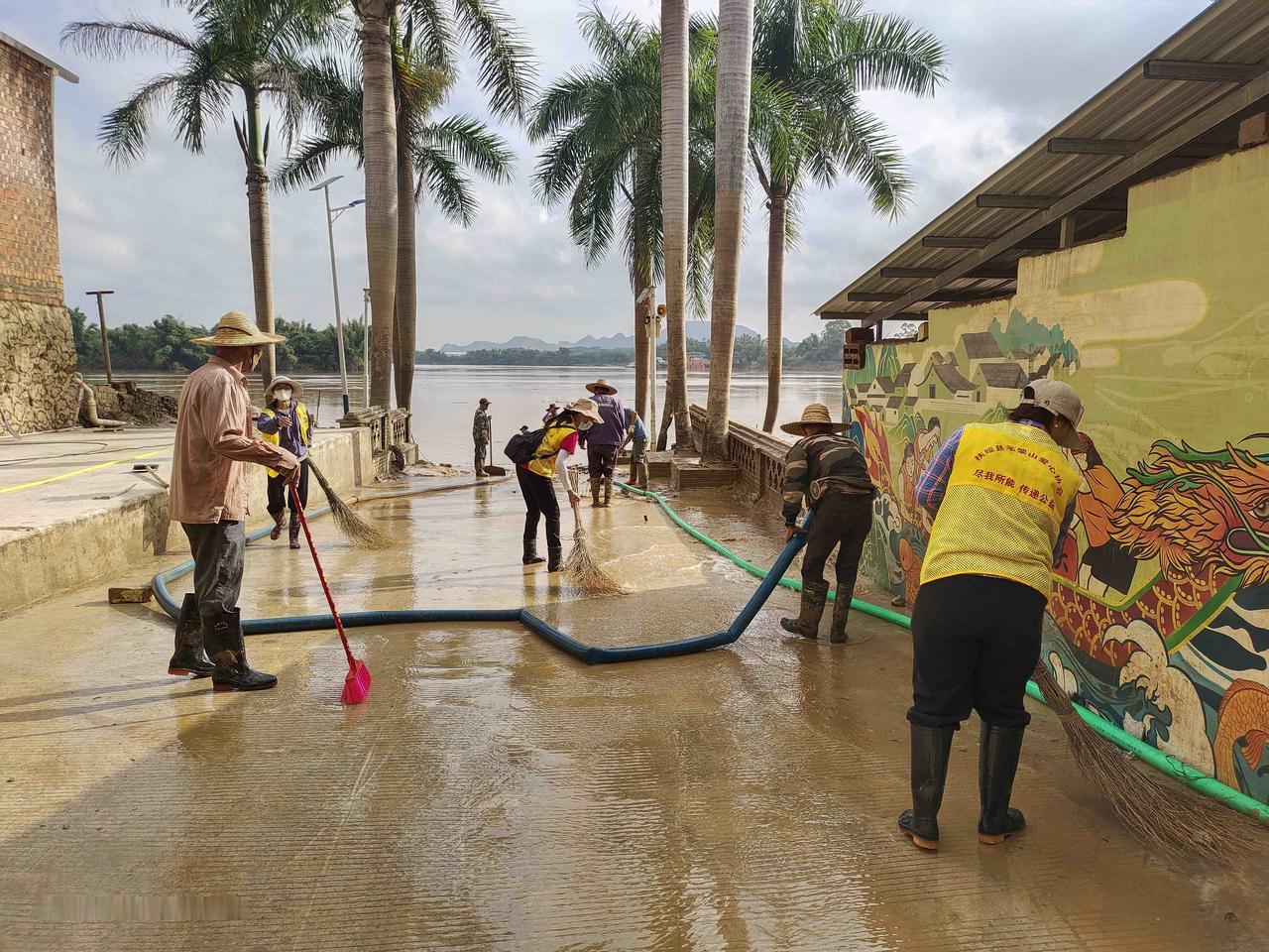 洪水退后,扶绥县笔架山爱心协会的志愿者积极参与清淤清洗工作,在龙头河堤,经过四个多小时的工作,把满是淤泥的房子和路面清洗的干干净净!