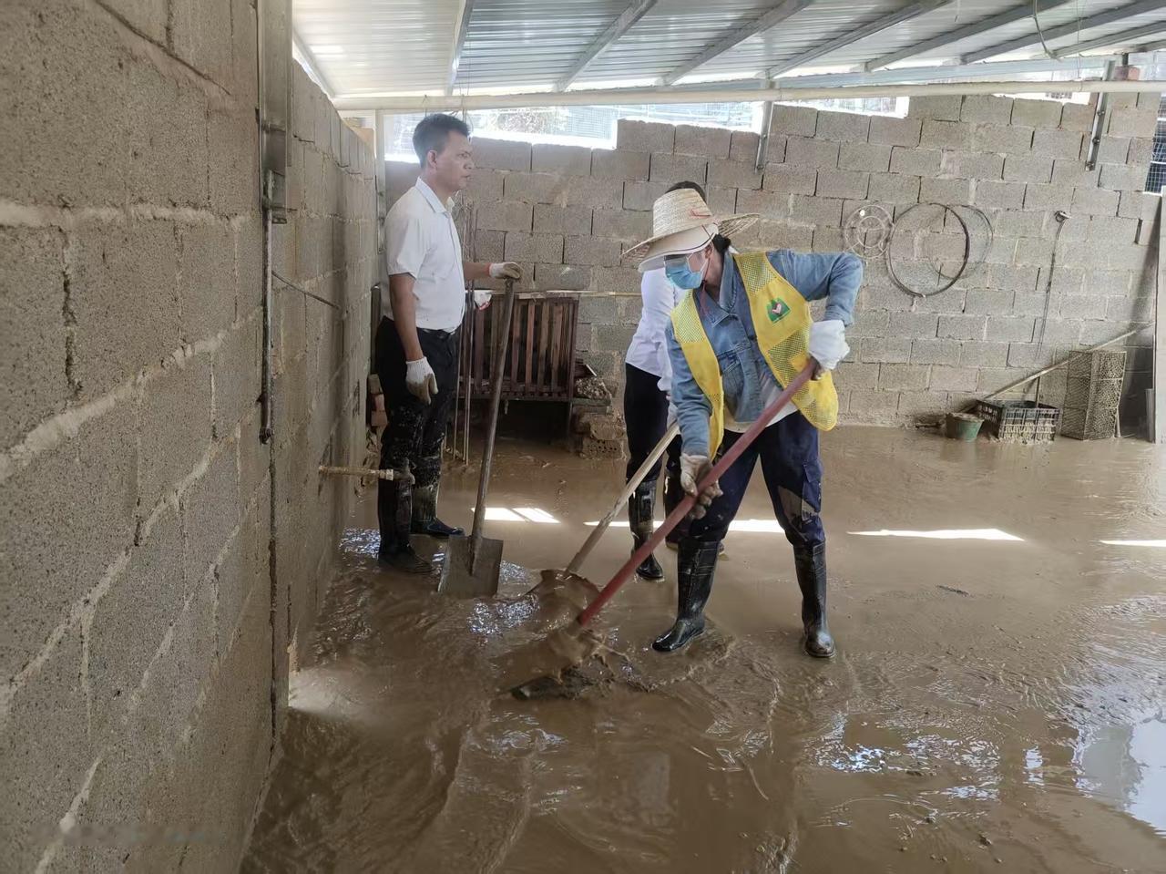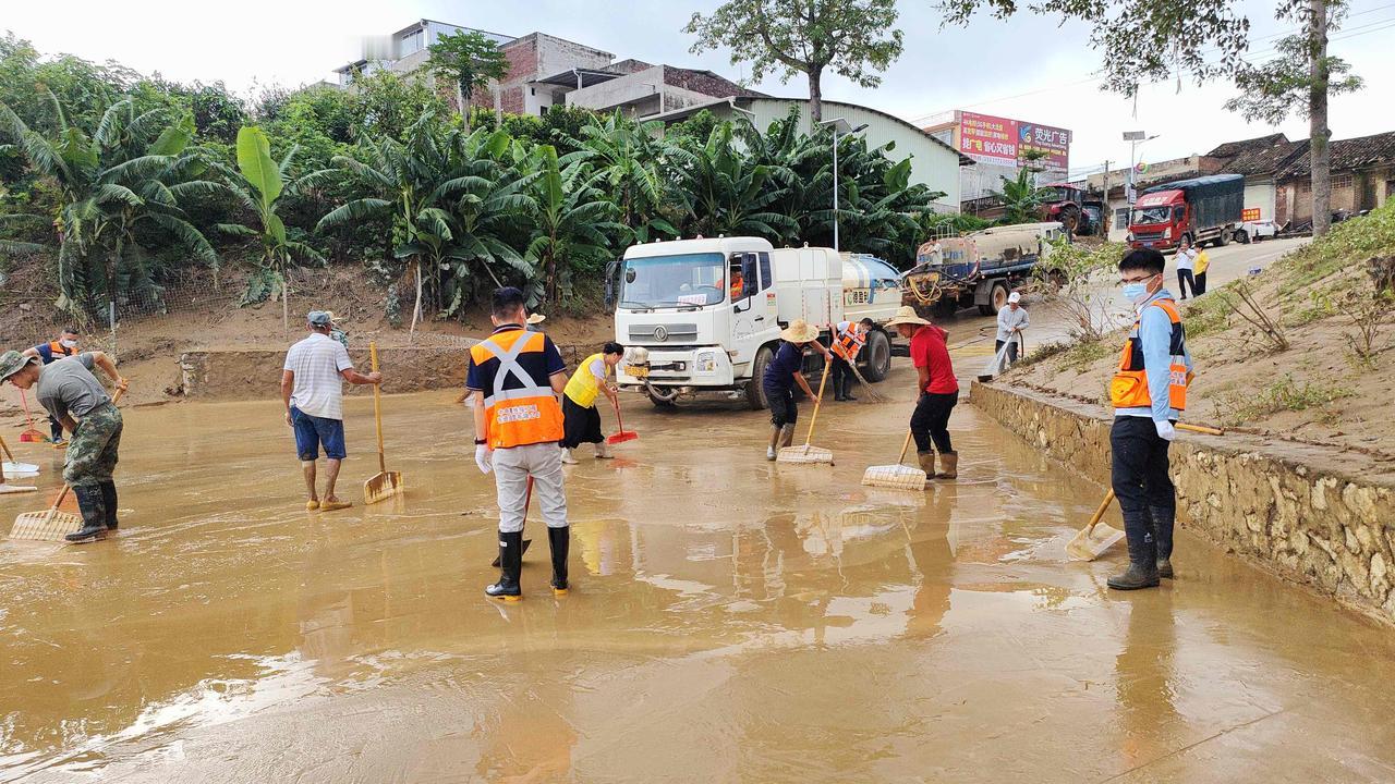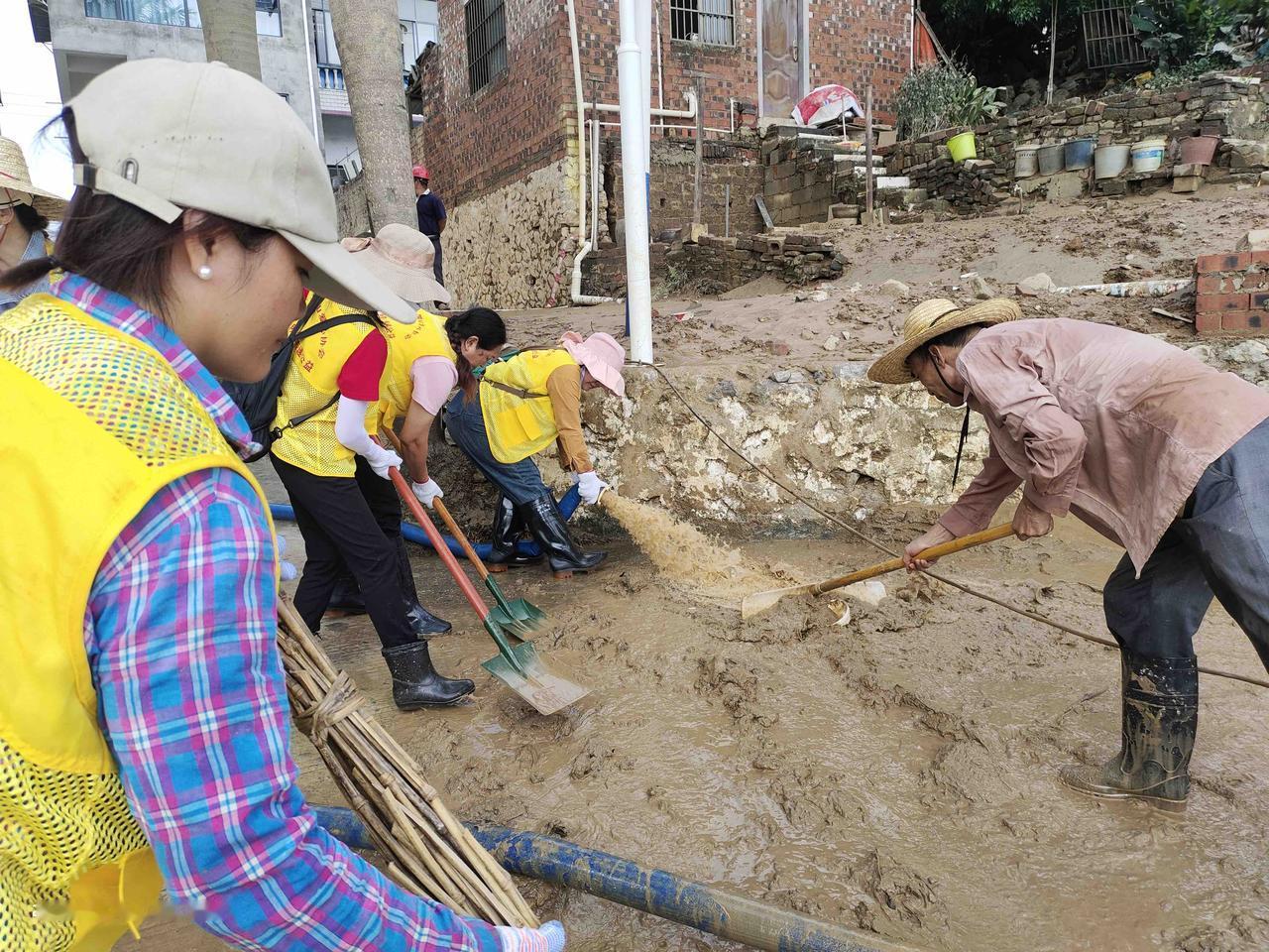 洪水退后,扶绥县笔架山爱心协会的志愿者积极参与清淤清洗工作,在龙头河堤,经过四个多小时的工作,把满是淤泥的房子和路面清洗的干干净净!
