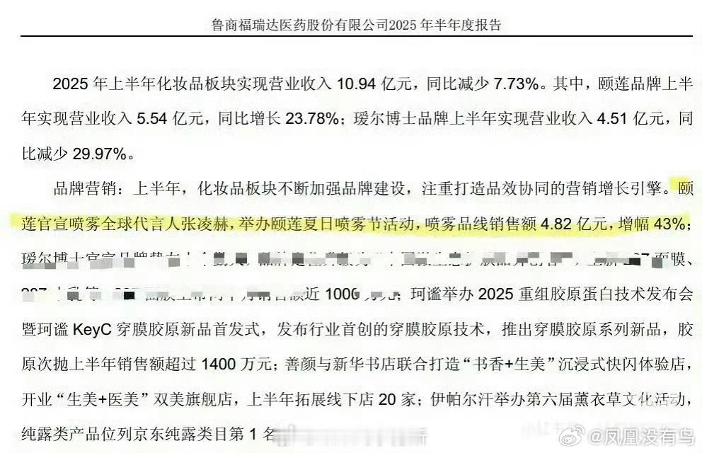 张凌赫代言颐莲喷雾后销售额近5亿,增幅43% [流鼻血][流鼻血]