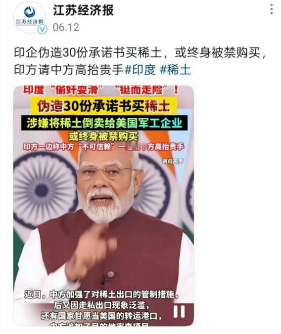 印度倒卖稀土遭实锤!承诺成空文,二道贩子本性暴露无遗