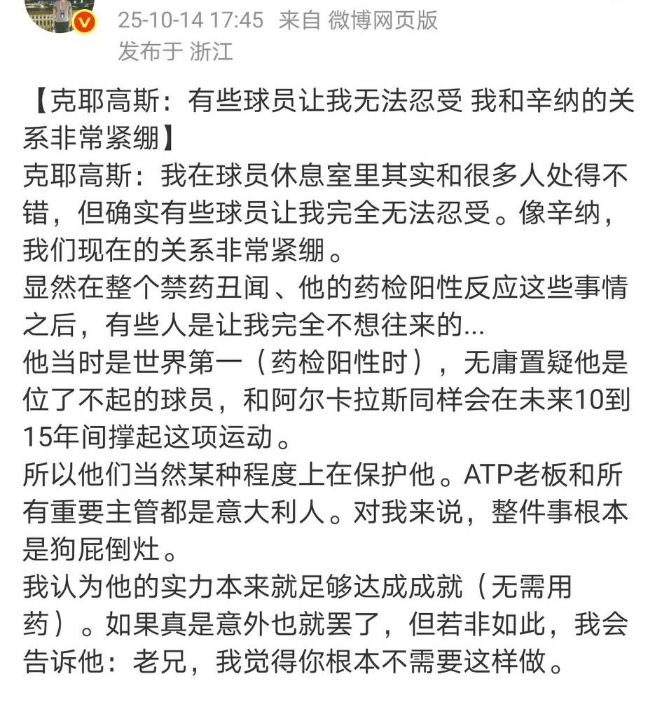 曾经的网坛坏小子克耶高斯是真敢骂啊: 1、骂纳达尔 2、骂辛纳最来劲,恨不得生剥。 3、谈跟穆雷的关系,早已不是朋友。