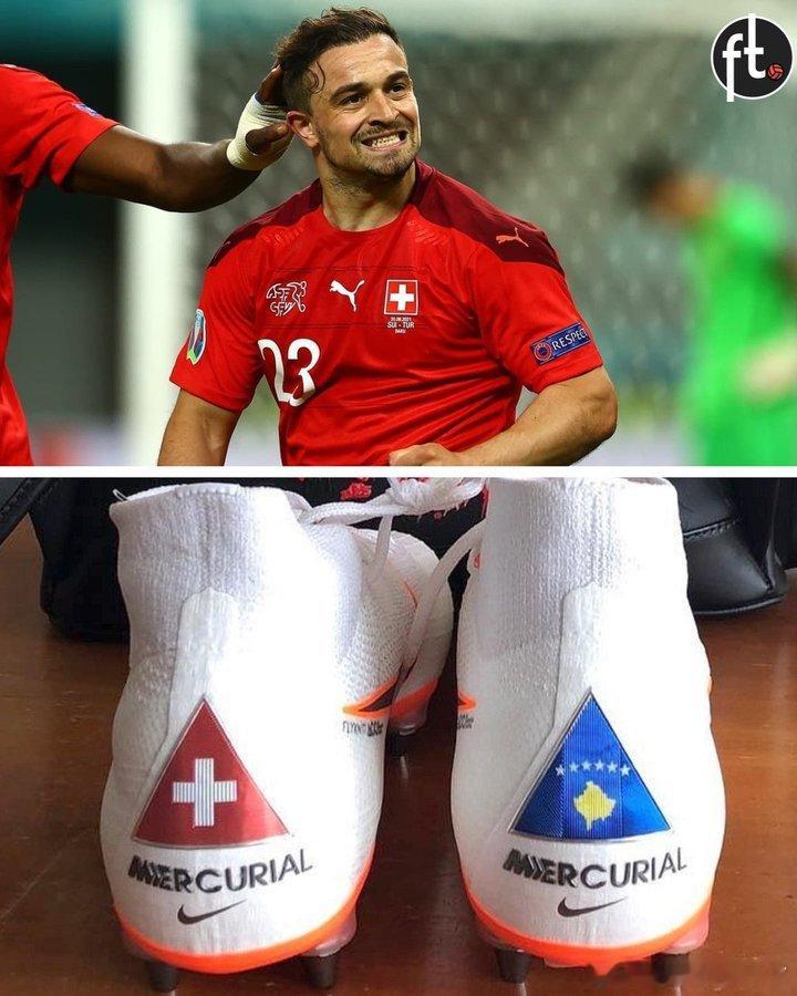 沙奇里在2018年世界杯代表瑞士出战时,他的左靴后跟绣着瑞士国旗,右靴则绣着科索沃国旗。