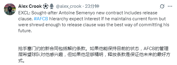 塞梅尼奥续约后,据悉合同里包含买断条款💰
