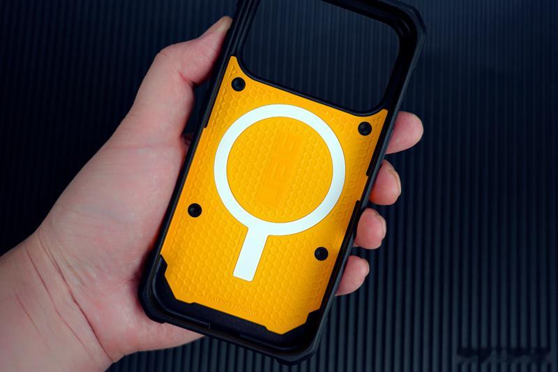万元机揣兜里总有点提心吊胆,毕竟这6.3英寸的屏幕和超瓷晶面板看着精致,实则“不耐摔不耐刮”。UAG这壳子是真懂防护,直接拉满军工级标准,1.2米高度跌落都能扛住,边角加厚设计配蜂巢式缓冲结构,摔下去能直接卸力。最贴心的是屏幕和镜头都做了加高处理,平放在桌上完全不贴桌面,再也不怕划到玻璃面板了。
