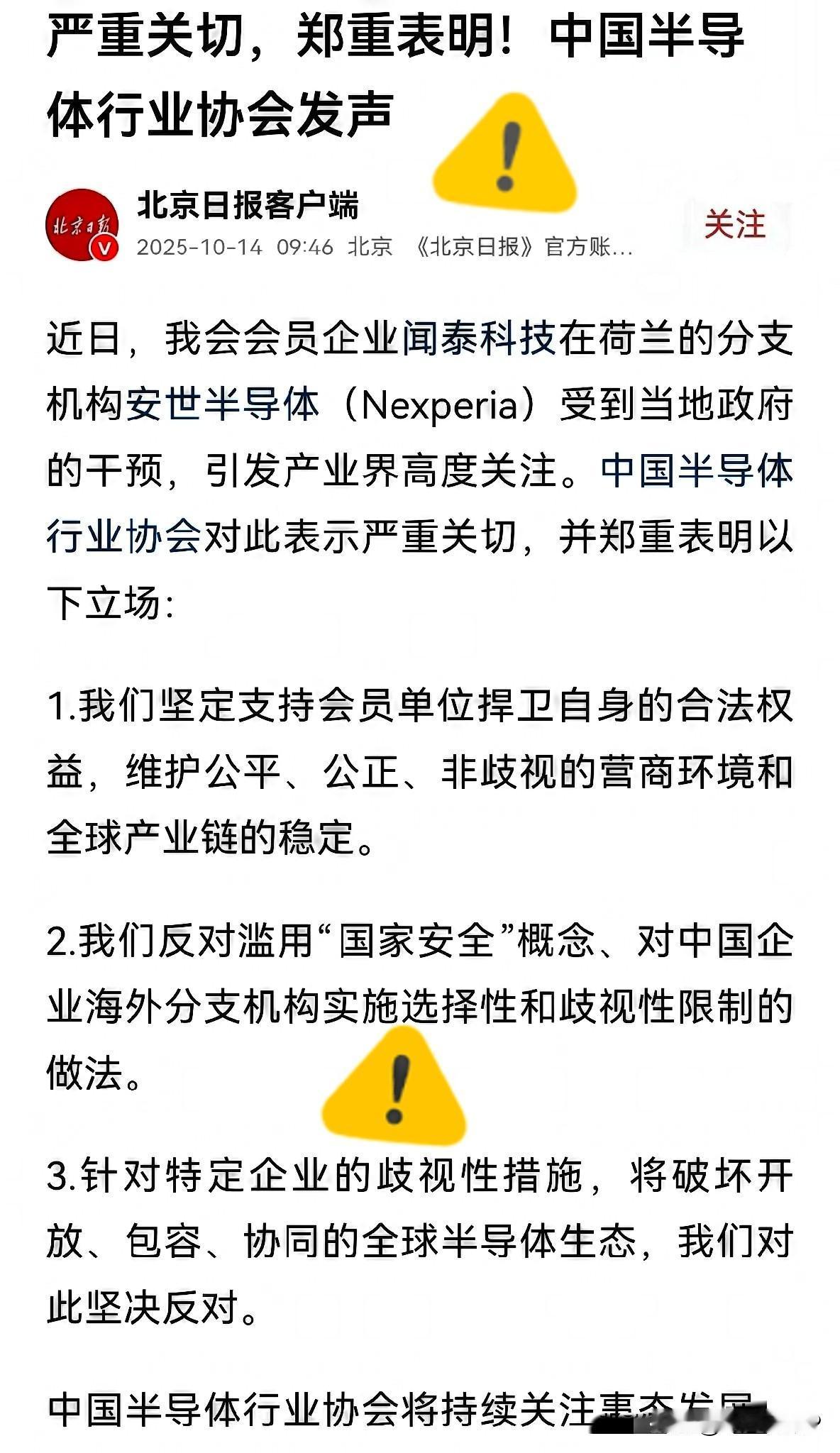 荷兰大概率要为它的无理行径付出代价了! 环球时报发表了一篇社评文章:荷兰不要低估中方维护正当权益的决心与能力!在中美贸易战白热化的关键阶段,这个小国不知进退,甘为美国的仆从,妄图火中取栗,以莫须有的理由将中国企业多年的心血和投资据为己有。 荷兰政府这次直接把安世半导体的资产冻结了。他们通过法院裁决把中方CEO的权力停了,99%的股权交给别人托管。这就像21世纪的海盗抢东西,只不过穿上了西装。 安世半导体是闻泰科技最赚钱的买卖,去年收入差不多147亿元,占整个集团收入的38%。这么好的一家企业,荷兰突然就说它“威胁国家安全”。他们拿不出任何真凭实据,就这么硬抢。 荷兰嘴上说这事和美国没关系,谁信啊。美国刚把闻泰科技列入黑名单,荷兰立马就跟进了。明摆着是给美国当打手,配合他们打压中国技术的战略。 更气人的是,安世半导体在荷兰一直老老实实做生意,交了差不多1.3亿欧元的税,还雇了好几千当地人呢。这么一个守规矩的企业,说翻脸就翻脸。荷兰政府到现在也拿不出像样的证据。 中国外交部已经明确表态了,反对他们随便拿国家安全当借口欺负中国企业。我们维护自己利益的决心坚定不移。《中华人民共和国反外国制裁法》可不是摆设,真动手的时候有的是办法。 荷兰可能忘了,中国是他们半导体行业的重要买家。他们的光刻机巨头ASML很大一部分生意要靠中国市场。这么搞下去,谁还敢去荷兰投资?他们“欧洲门户”的名声怕是要保不住。 闻泰科技已经强硬回应,说这是出于地缘政治偏见的过度干预。企业正在启动所有法律和外交手段维权。国家也不会眼睁睁看着自己家的企业受欺负。 这事影响的远不止一家企业。它开了个特别坏的先例:就算中资企业合法收购好多年了,海外资产也可能因为政治原因被事后抢走。以后谁还敢在欧盟市场放心投资? 美国自己的对华关税政策已经反弹了,搞得美国企业成本暴涨、丢掉生意。荷兰现在学美国对付中国,恐怕会摔得更惨。 去年德国政府也曾想强行收购一家中资控股的港口企业,最后在中国拿出对等反制清单后才不得不回到谈判桌上。这种以国家安全为名的政治操弄,最终损害的是所有投资者的信心。 各位读者你们怎么看?欢迎在评论区讨论。